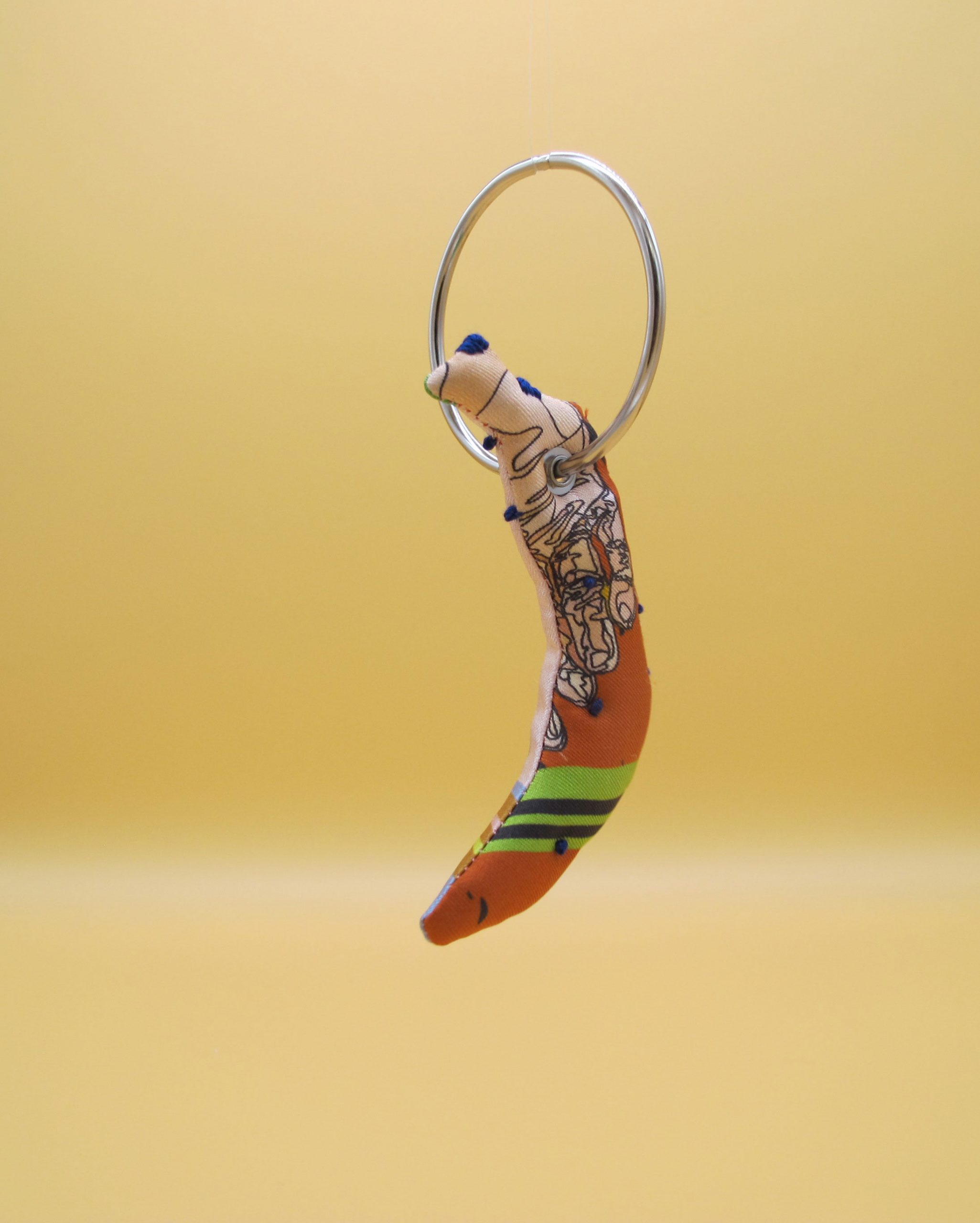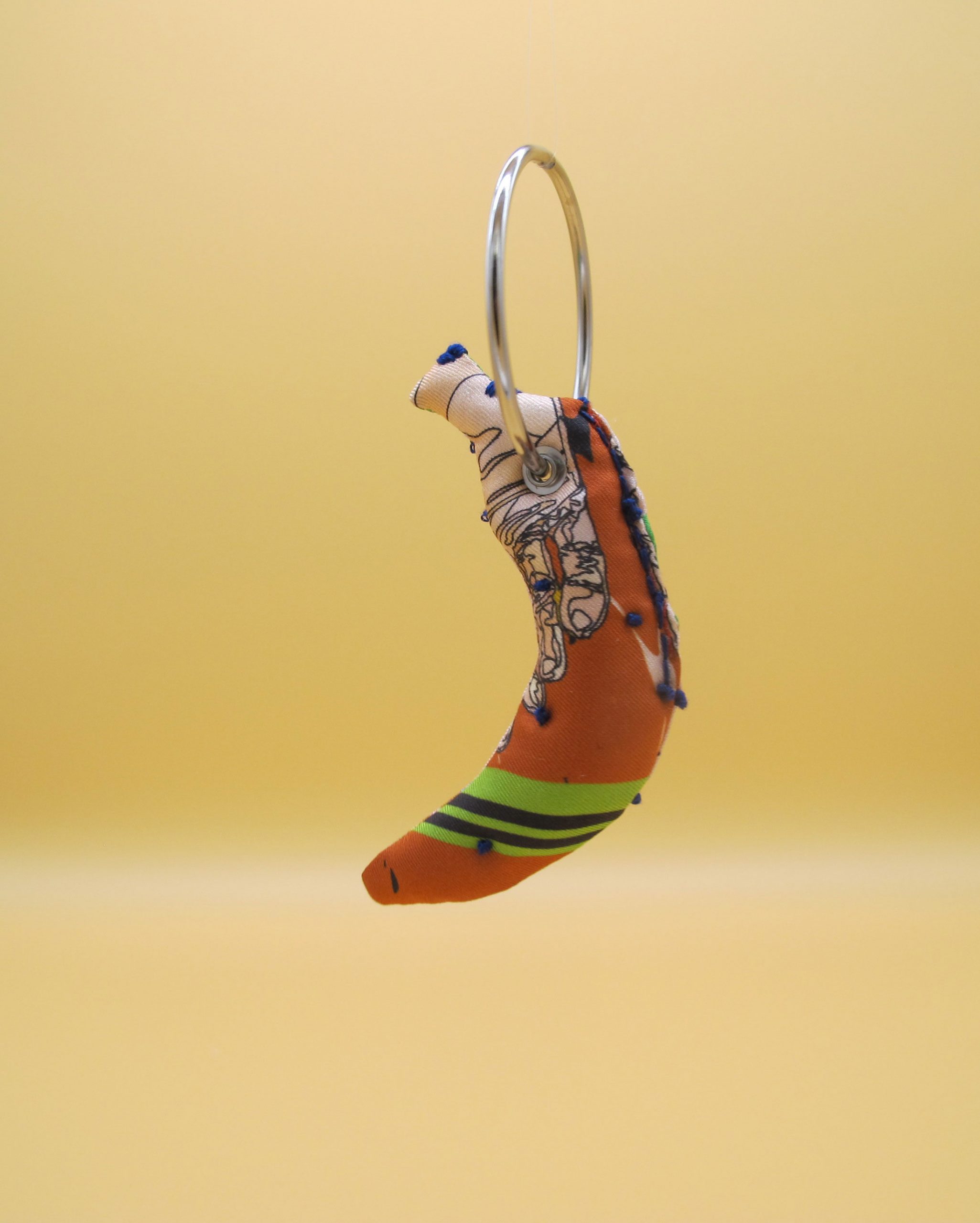 “Bag Charm” is hand made of repurposed hnyHANY silk twill foulards. This little friend for your hand bag was hand sewn, stuffed with soft wadding and hand embroidered in Berlin. Every piece is unique.