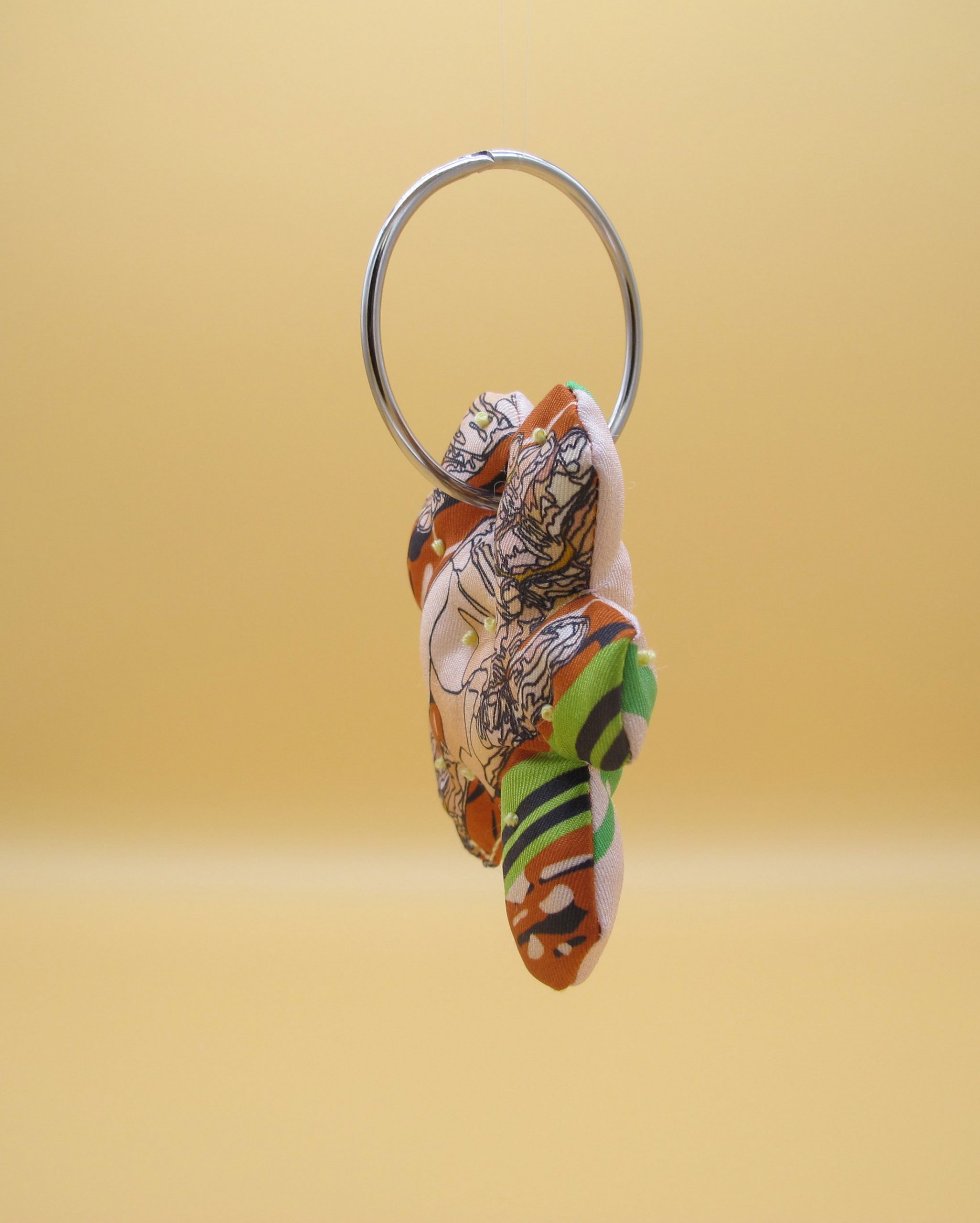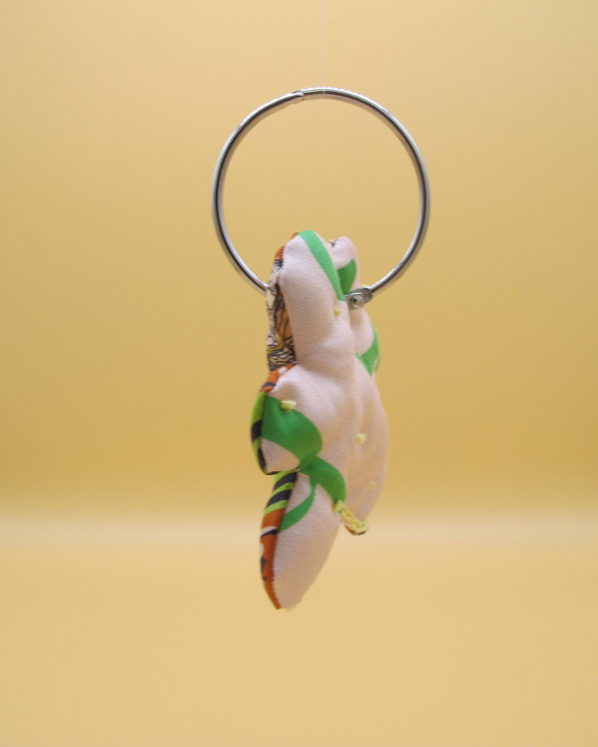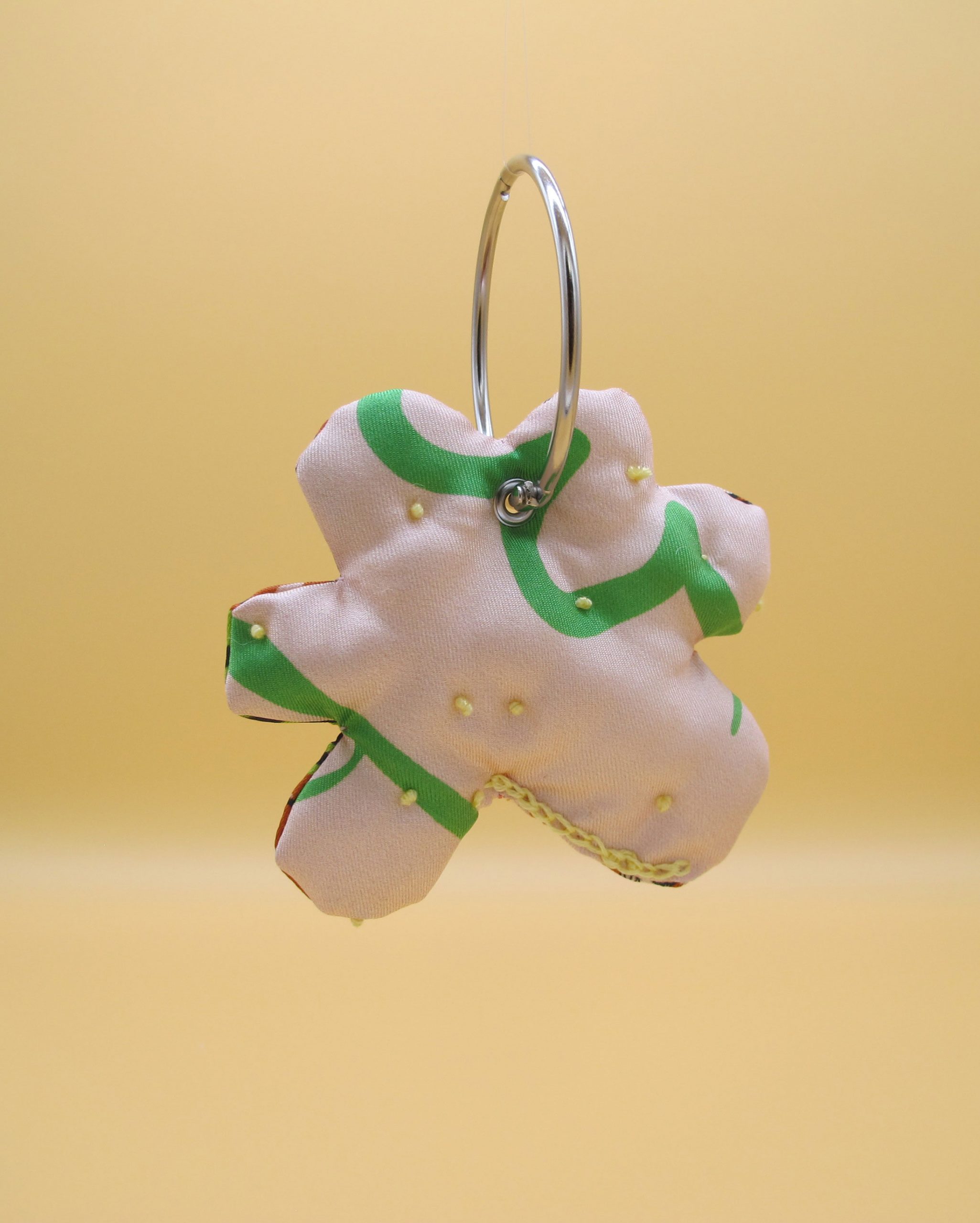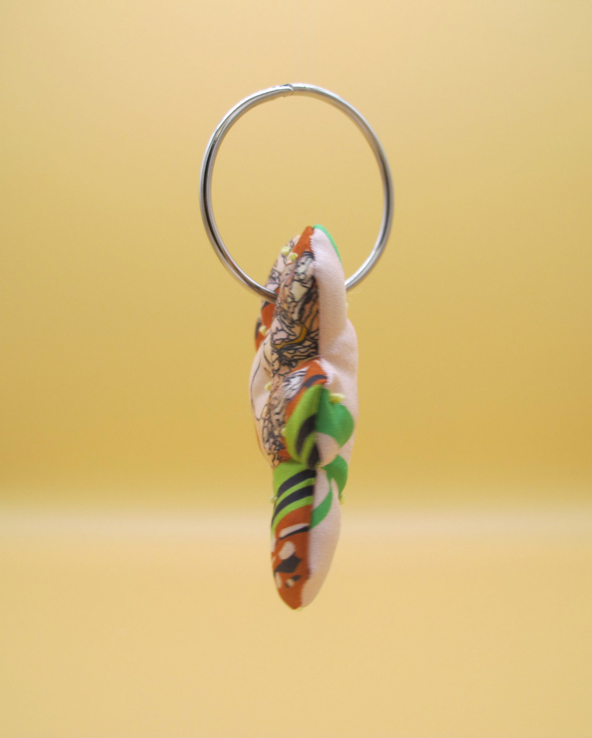 “Bag Charm” is hand made of repurposed hnyHANY silk twill foulards. This little friend for your hand bag was hand sewn, stuffed with soft wadding and hand embroidered in Berlin. Every piece is unique.