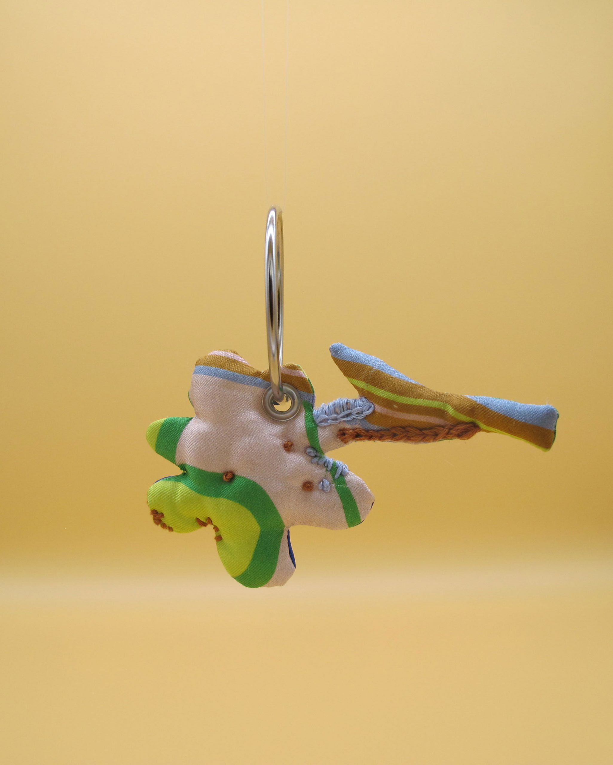 “Bag Charm” is hand made of repurposed hnyHANY silk twill foulards. This little friend for your hand bag was hand sewn, stuffed with soft wadding and hand embroidered in Berlin. Every piece is unique.