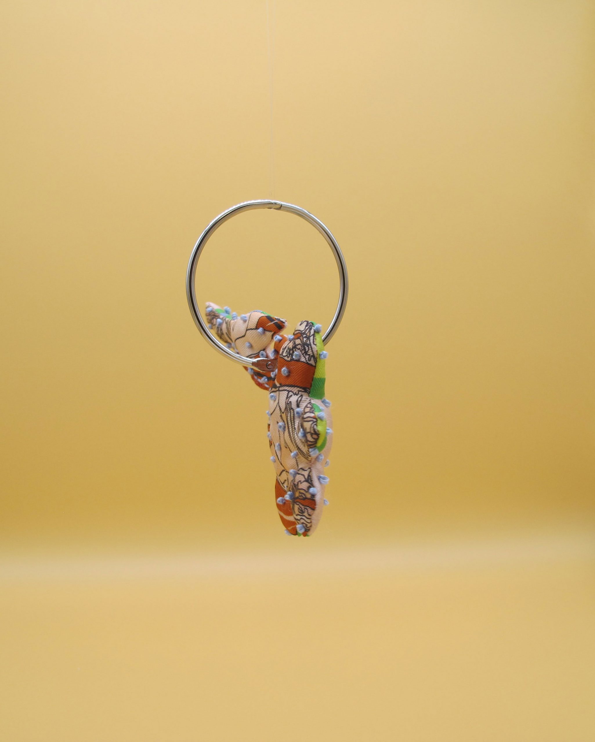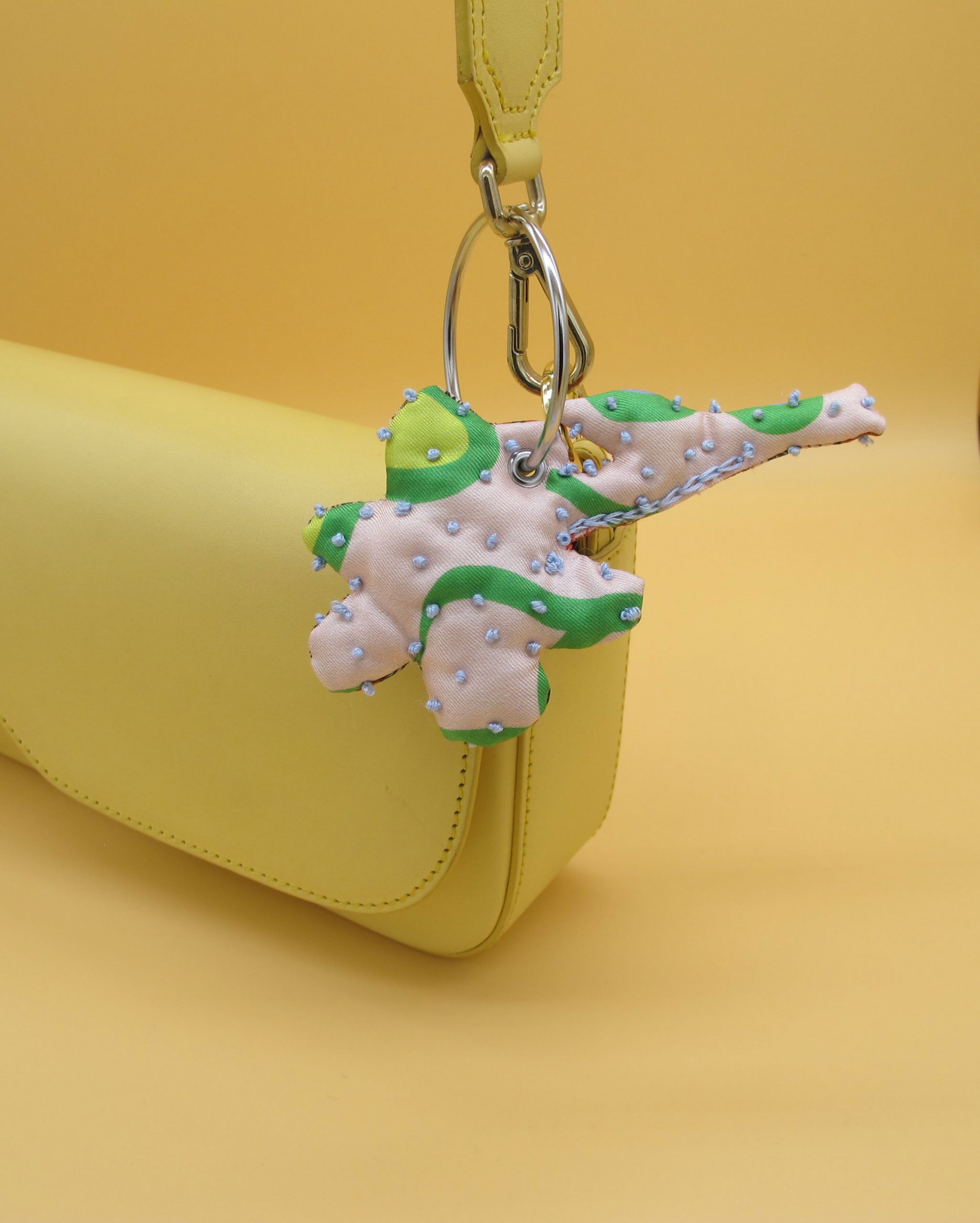 “Bag Charm” is hand made of repurposed hnyHANY silk twill foulards. This little friend for your hand bag was hand sewn, stuffed with soft wadding and hand embroidered in Berlin. Every piece is unique.