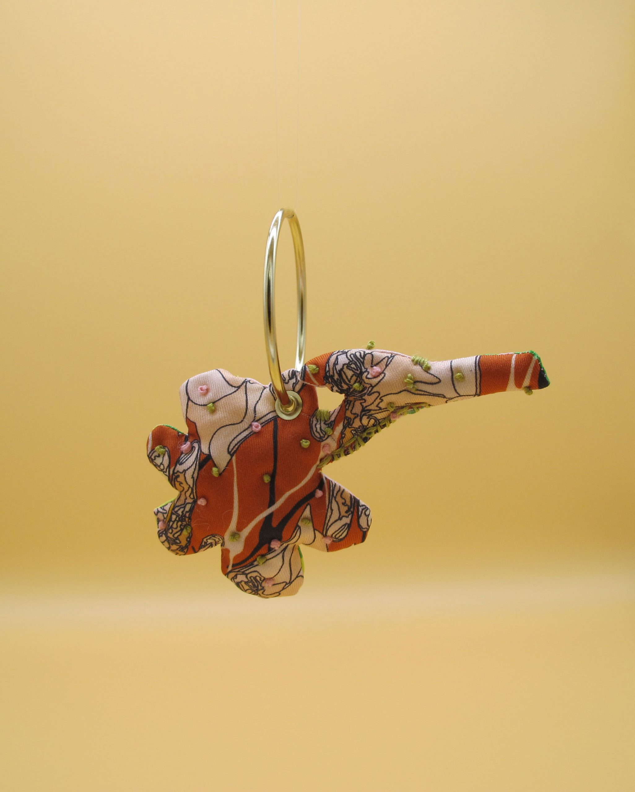 “Bag Charm” is hand made of repurposed hnyHANY silk twill foulards. This little friend for your hand bag was hand sewn, stuffed with soft wadding and hand embroidered in Berlin. Every piece is unique.