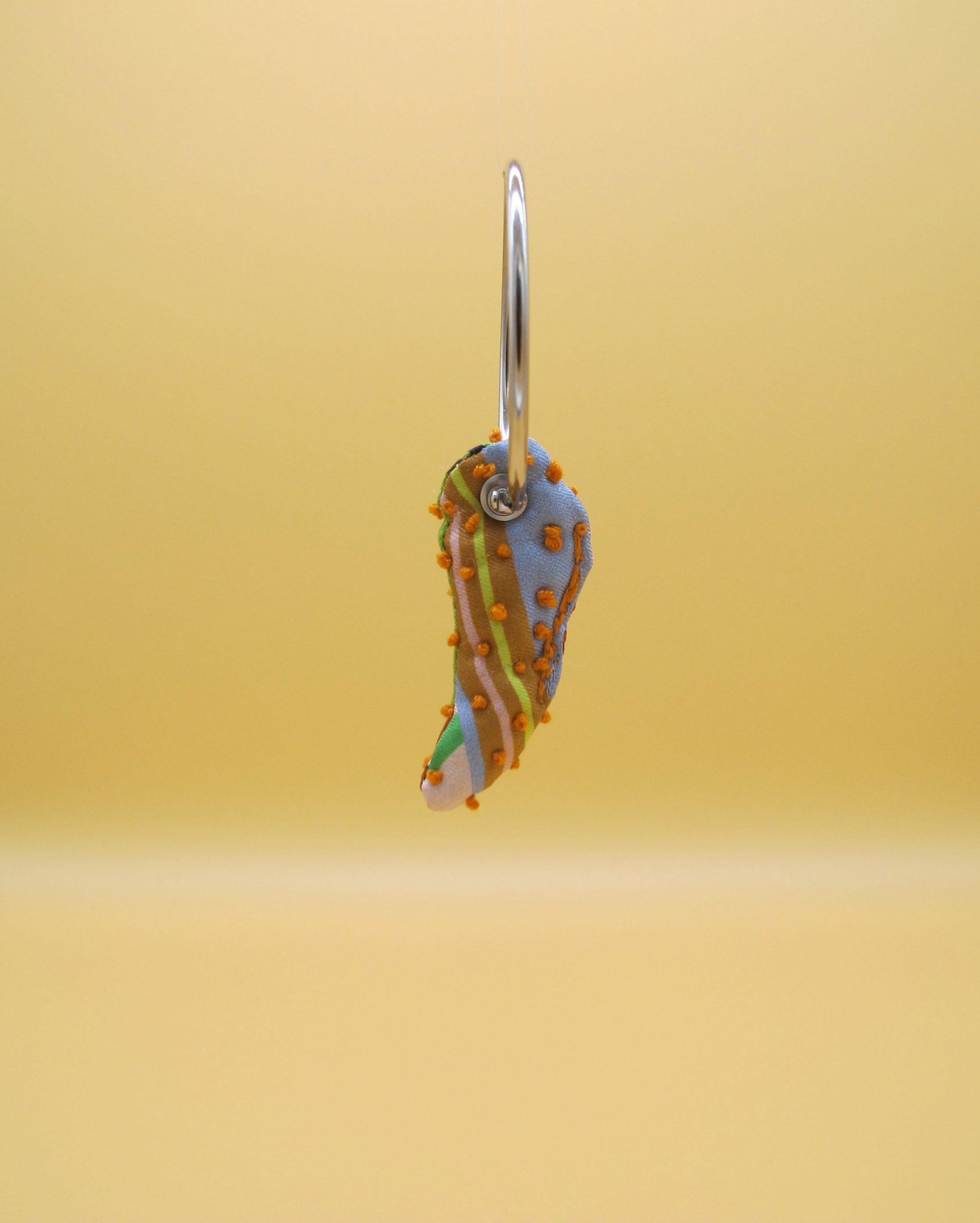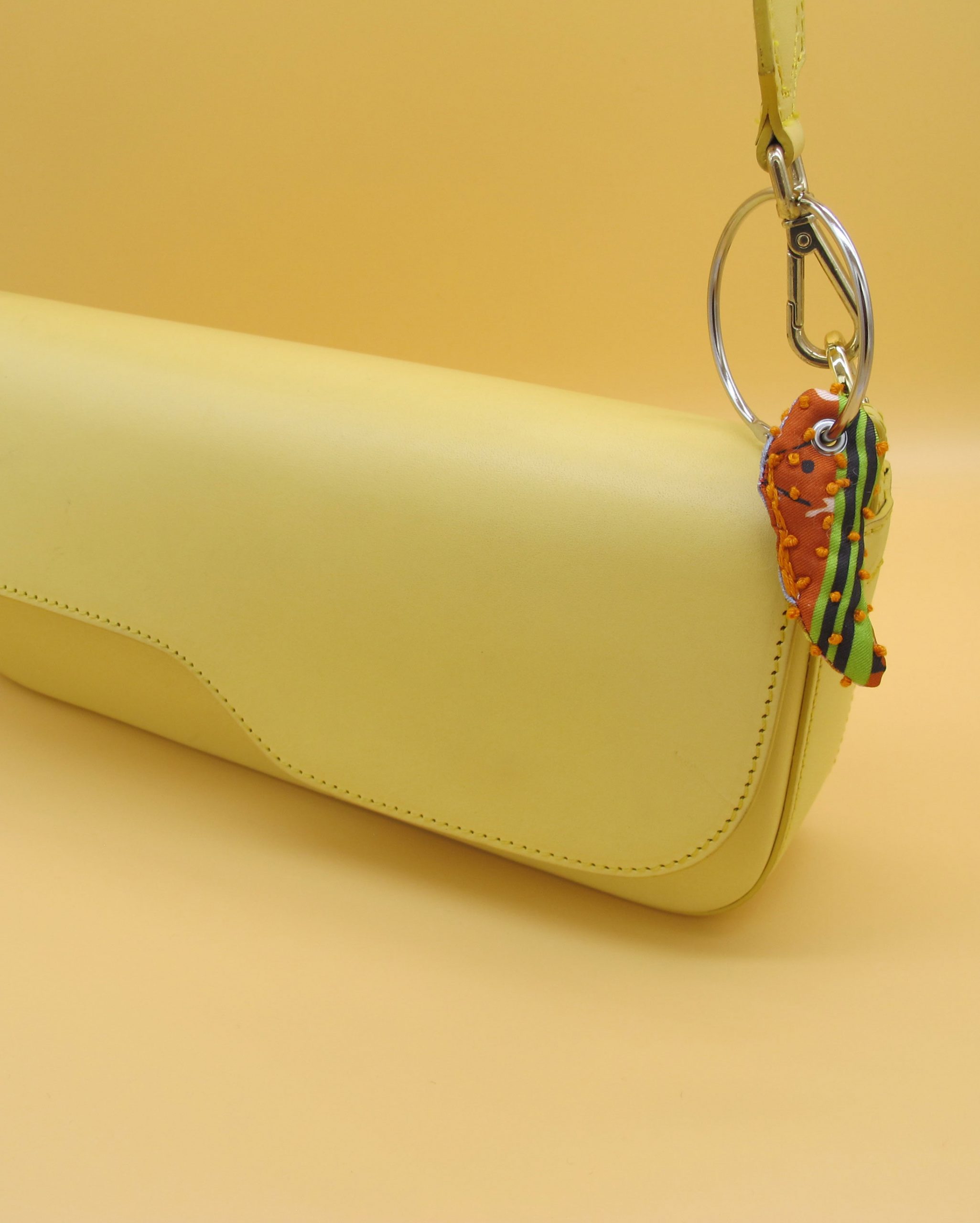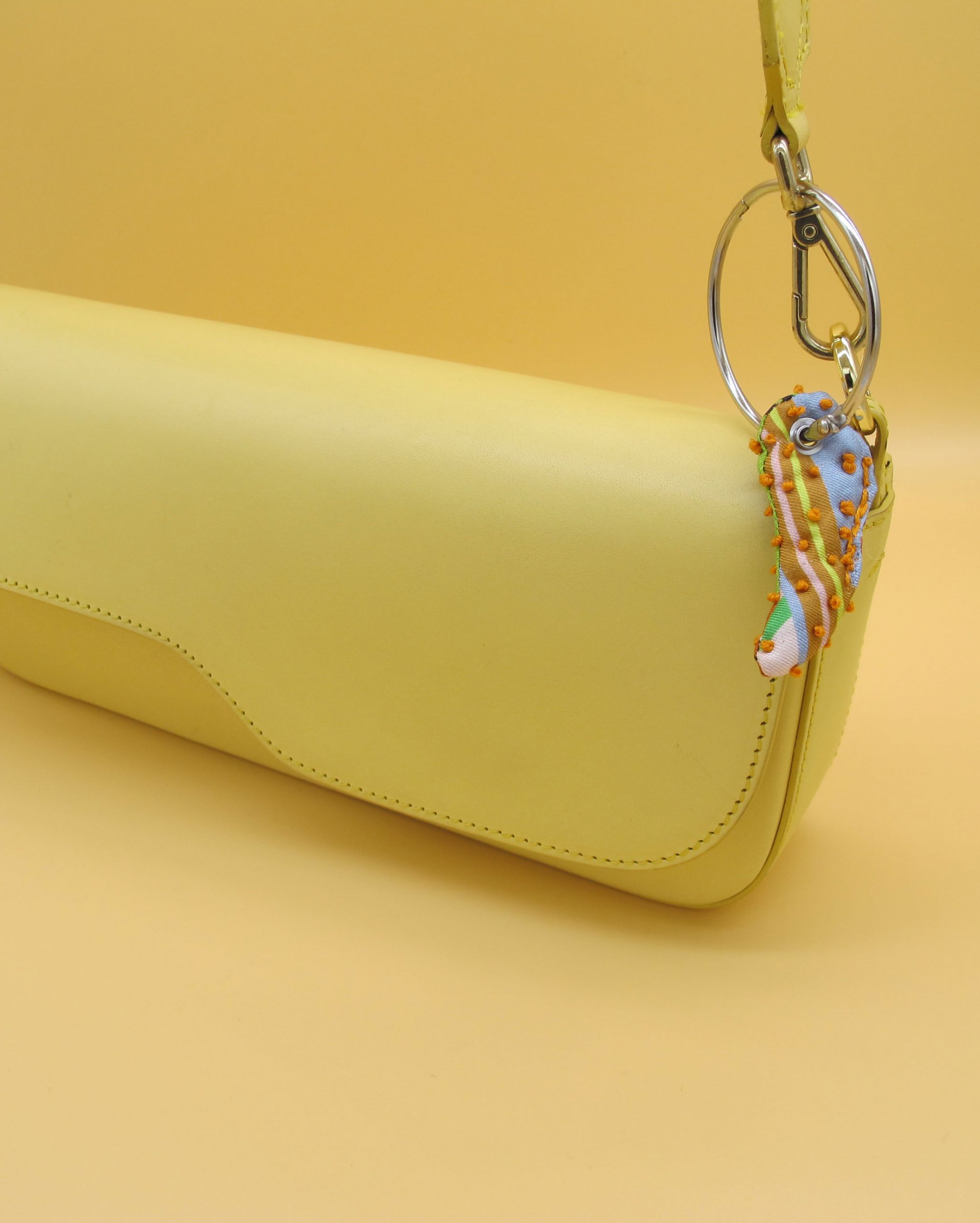 “Bag Charm” is hand made of repurposed hnyHANY silk twill foulards. This little friend for your hand bag was hand sewn, stuffed with soft wadding and hand embroidered in Berlin. Every piece is unique.