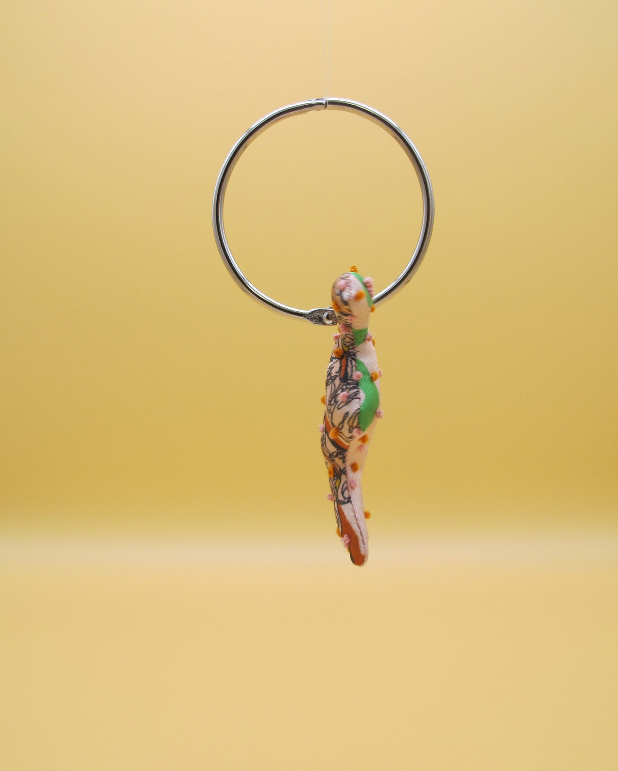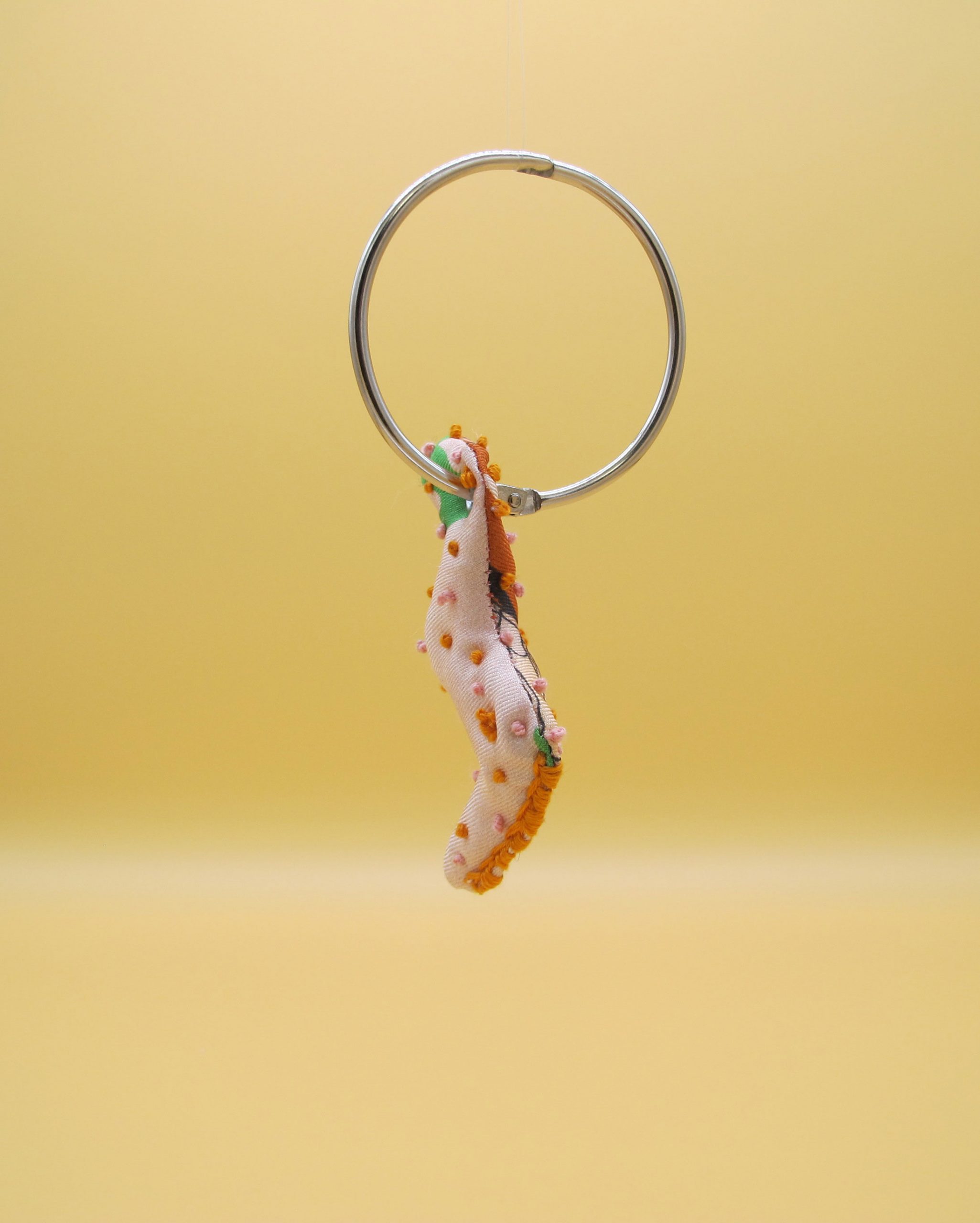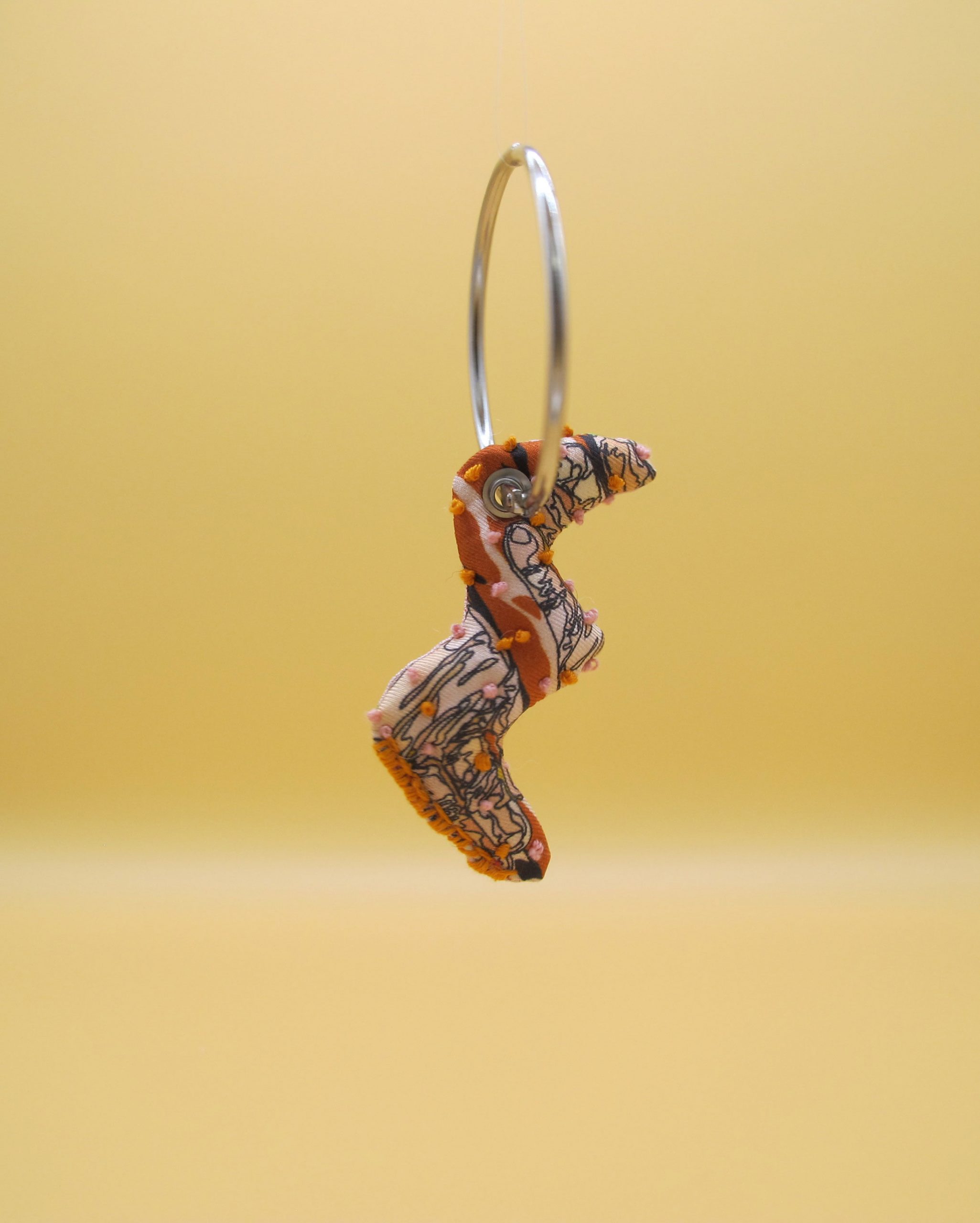 “Bag Charm” is hand made of repurposed hnyHANY silk twill foulards. This little friend for your hand bag was hand sewn, stuffed with soft wadding and hand embroidered in Berlin. Every piece is unique.