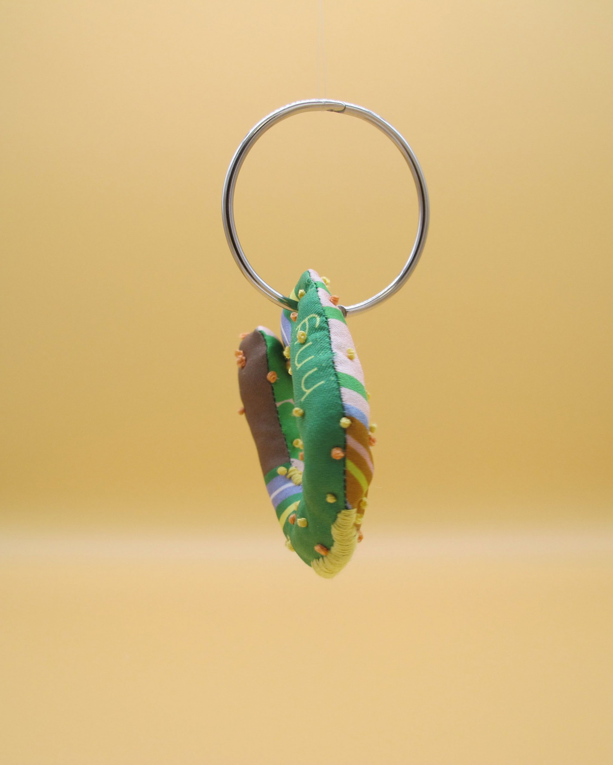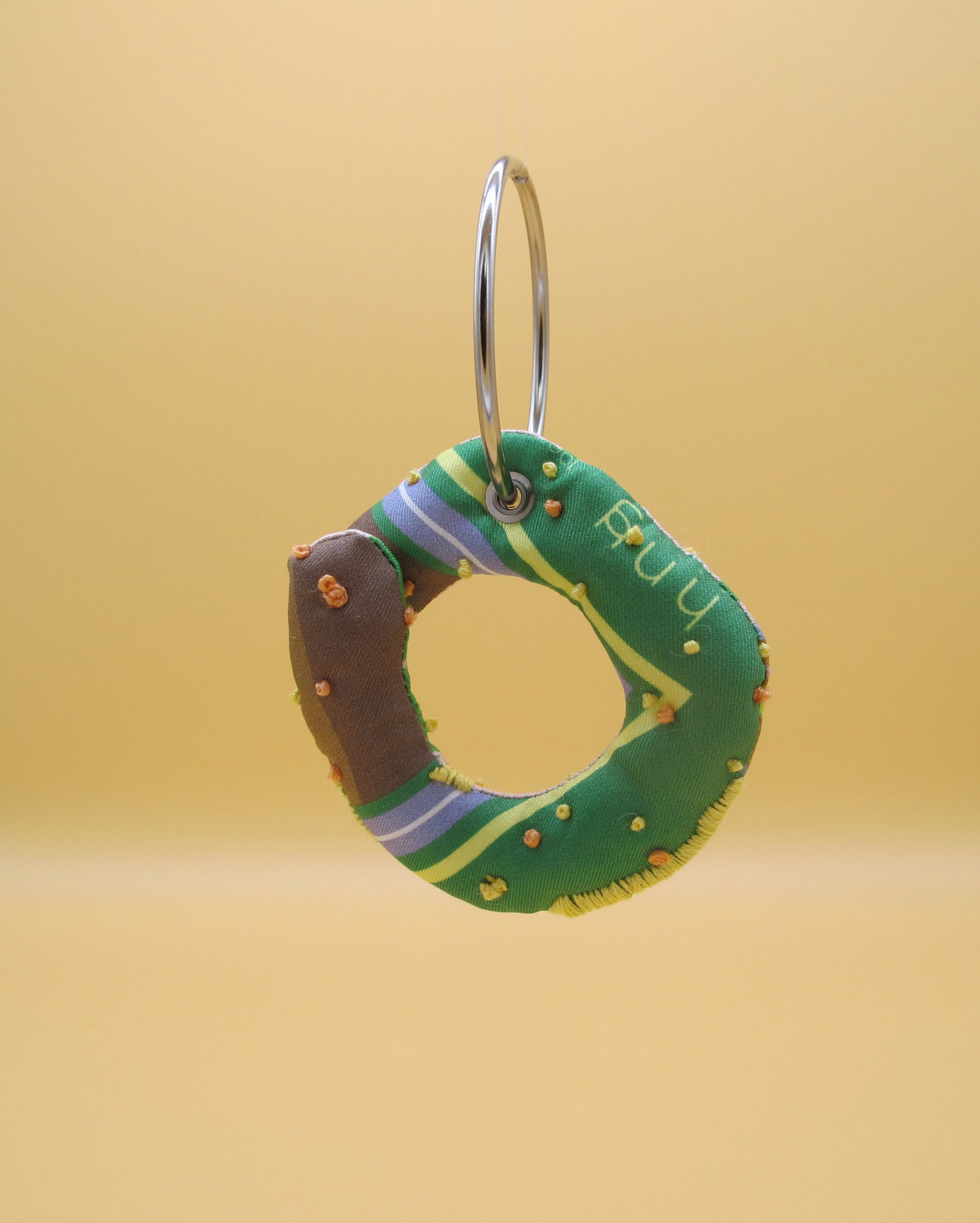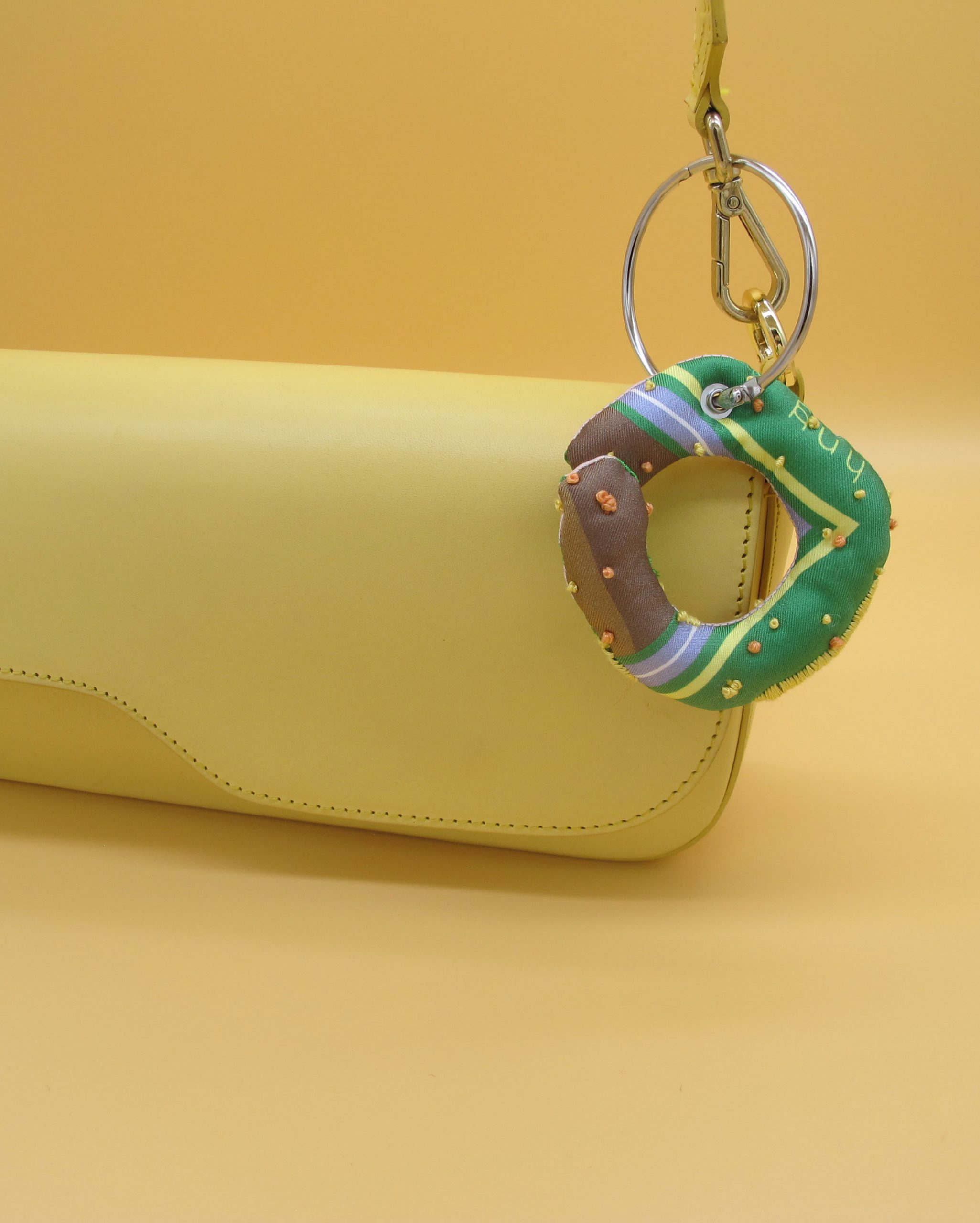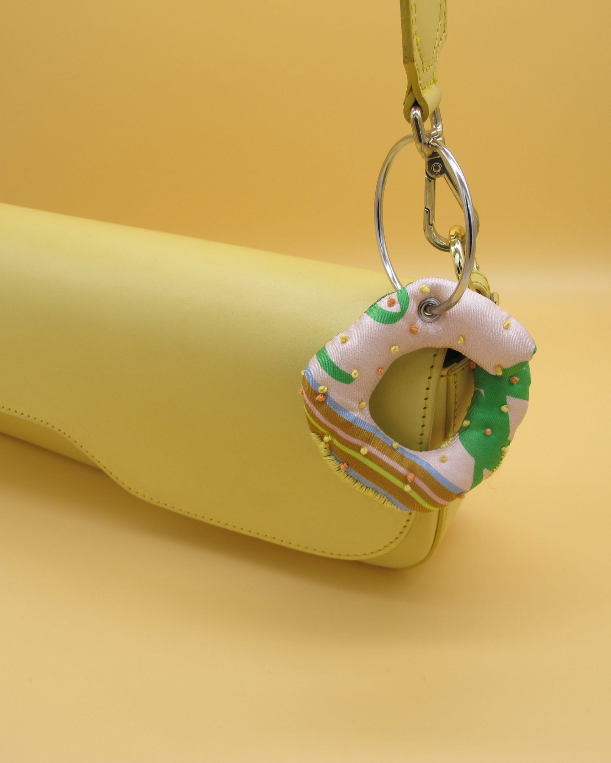 “Bag Charm” is hand made of repurposed hnyHANY silk twill foulards. This little friend for your hand bag was hand sewn, stuffed with soft wadding and hand embroidered in Berlin. Every piece is unique.
