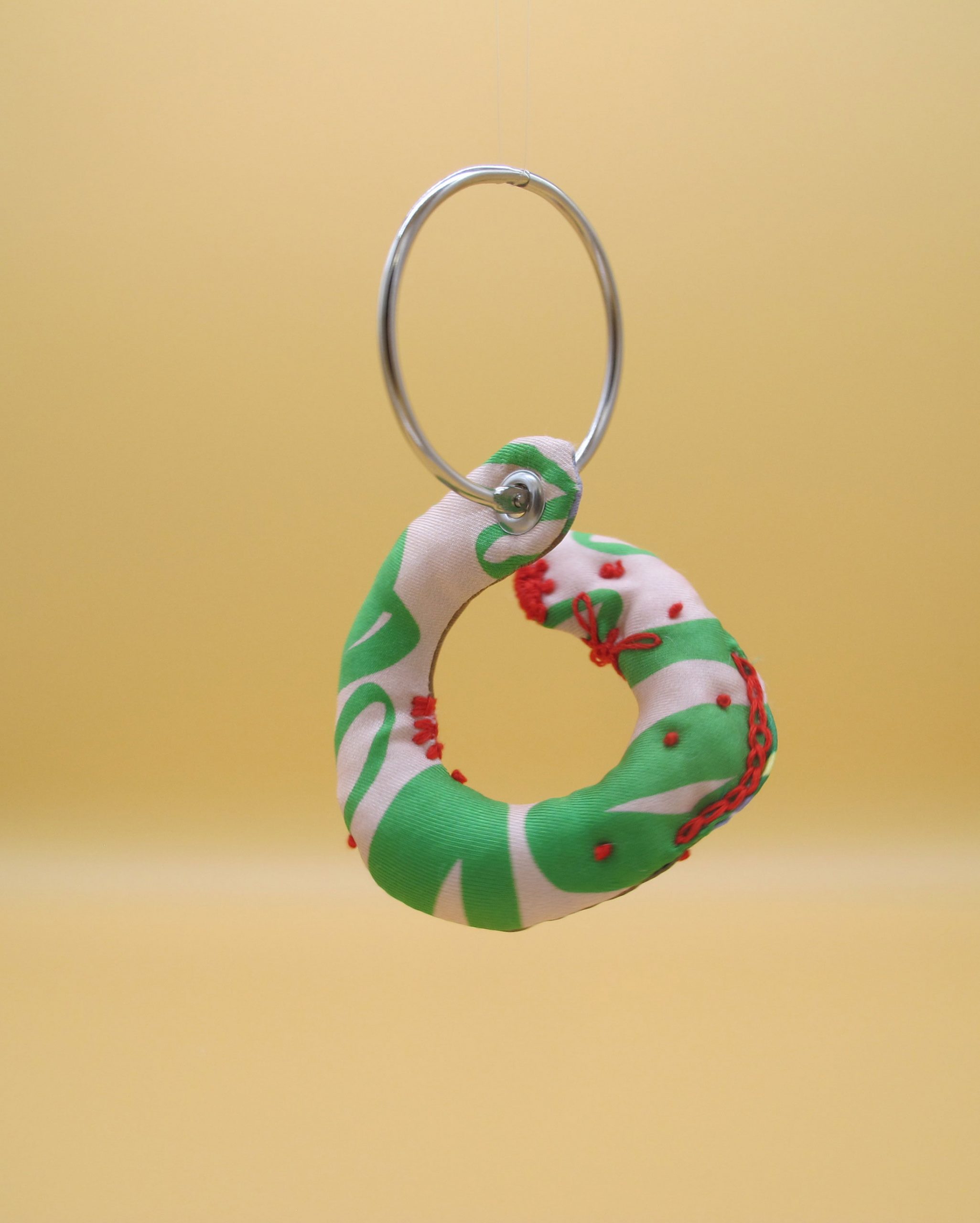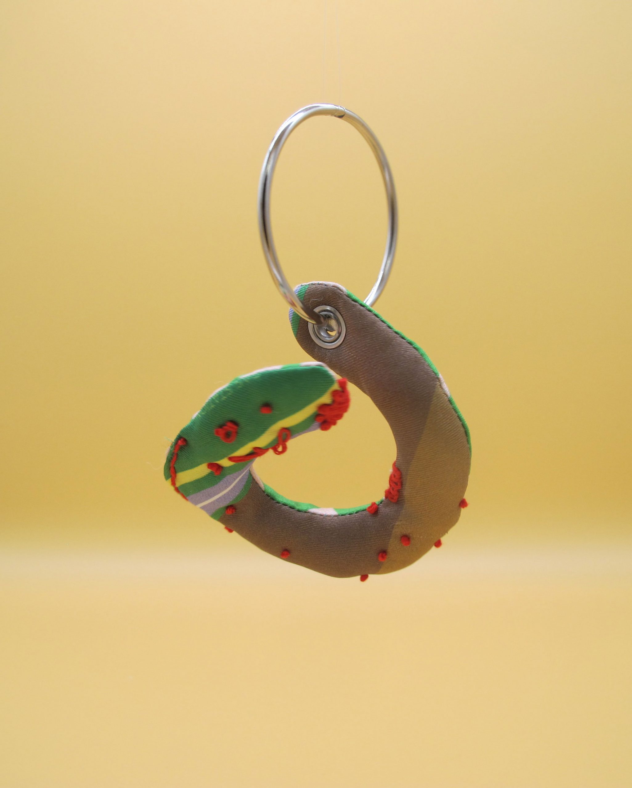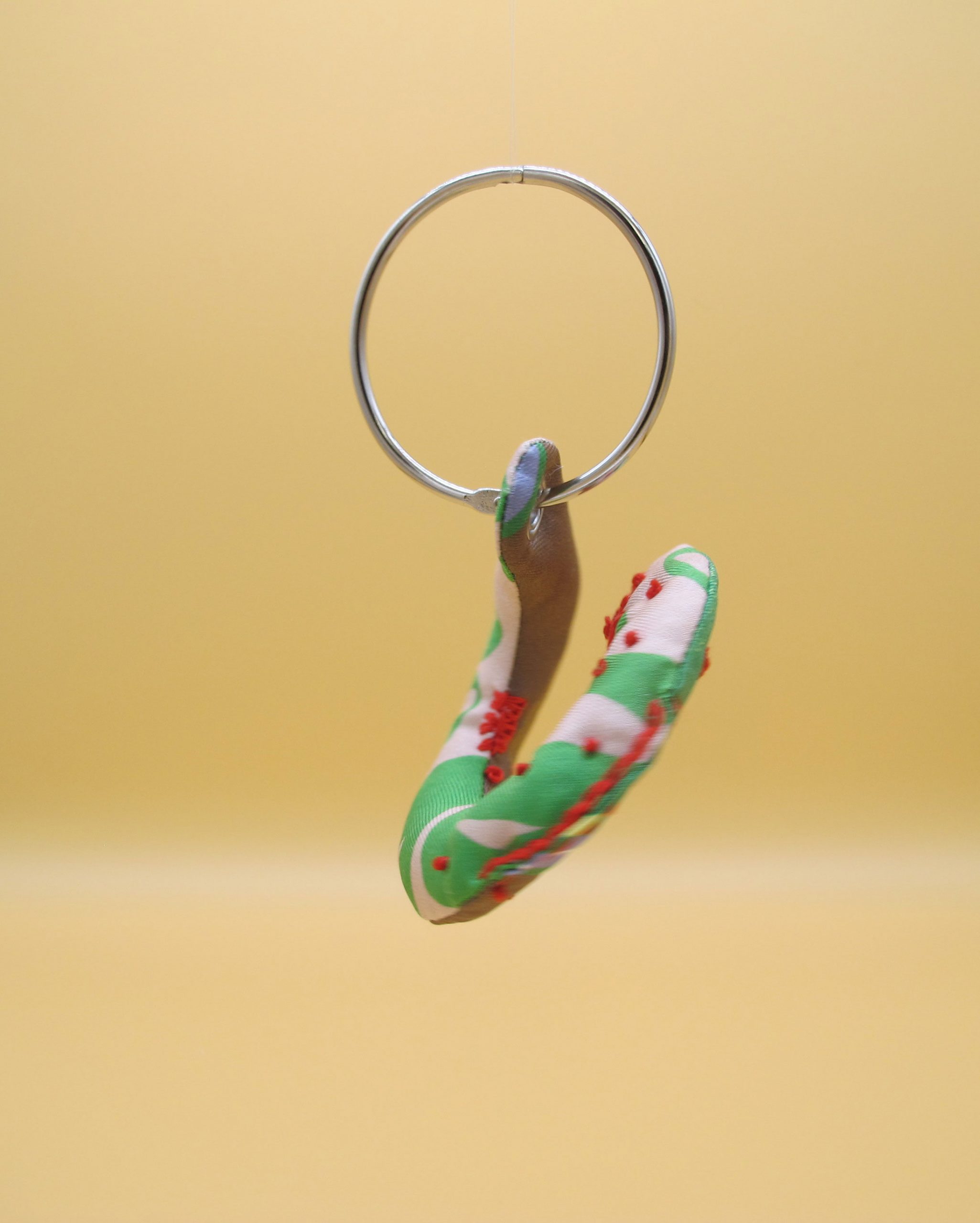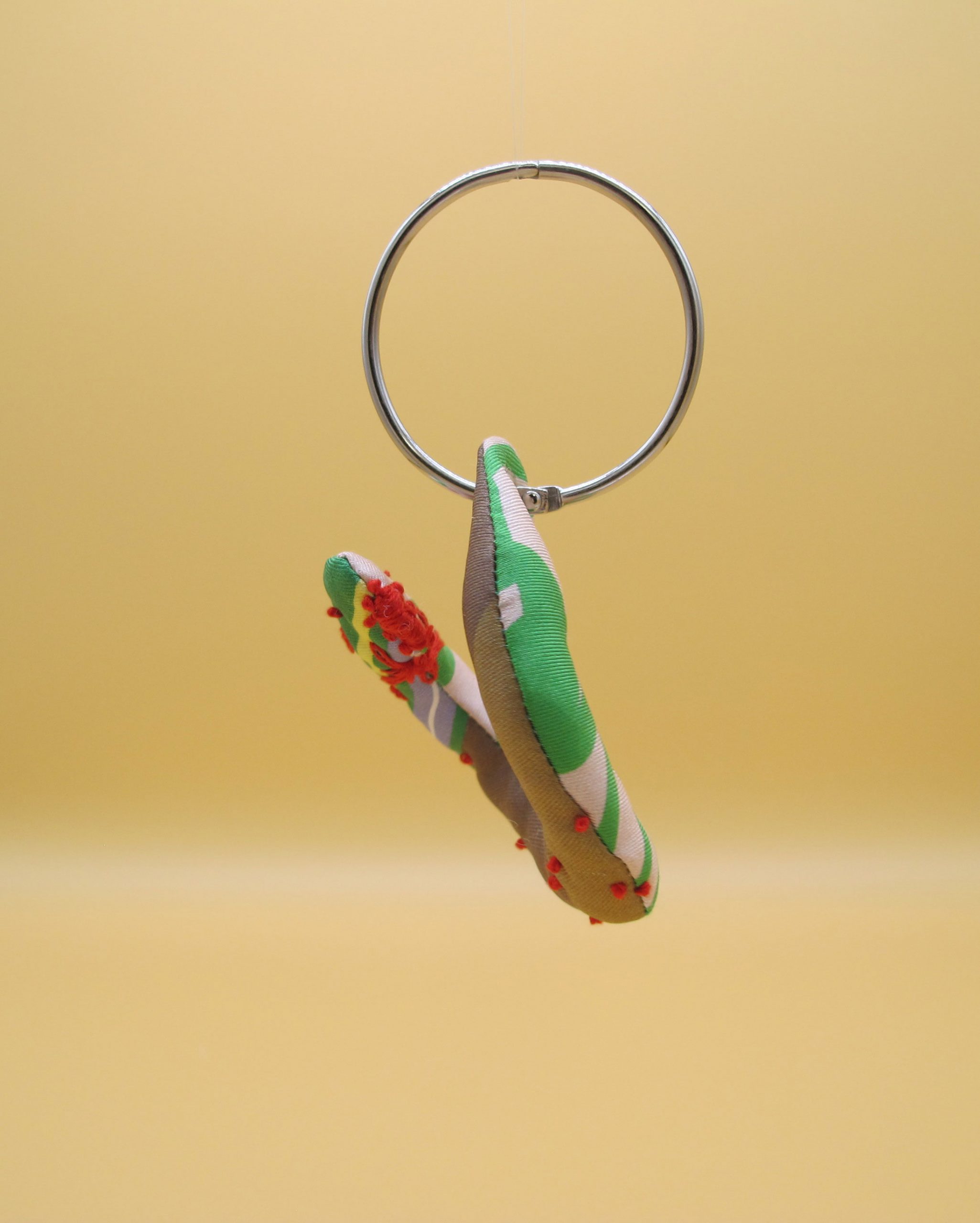 “Bag Charm” is hand made of repurposed hnyHANY silk twill foulards. This little friend for your hand bag was hand sewn, stuffed with soft wadding and hand embroidered in Berlin. Every piece is unique.