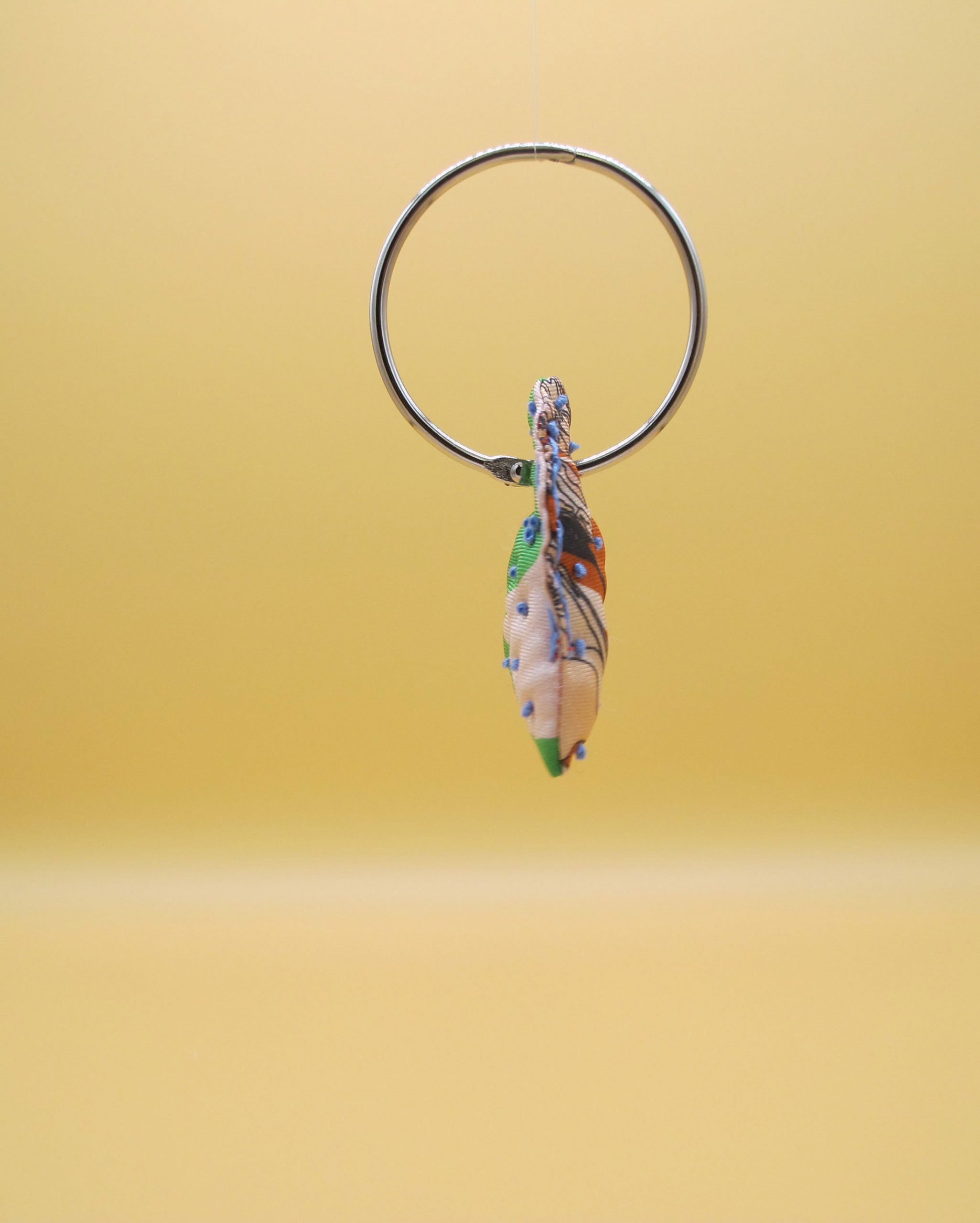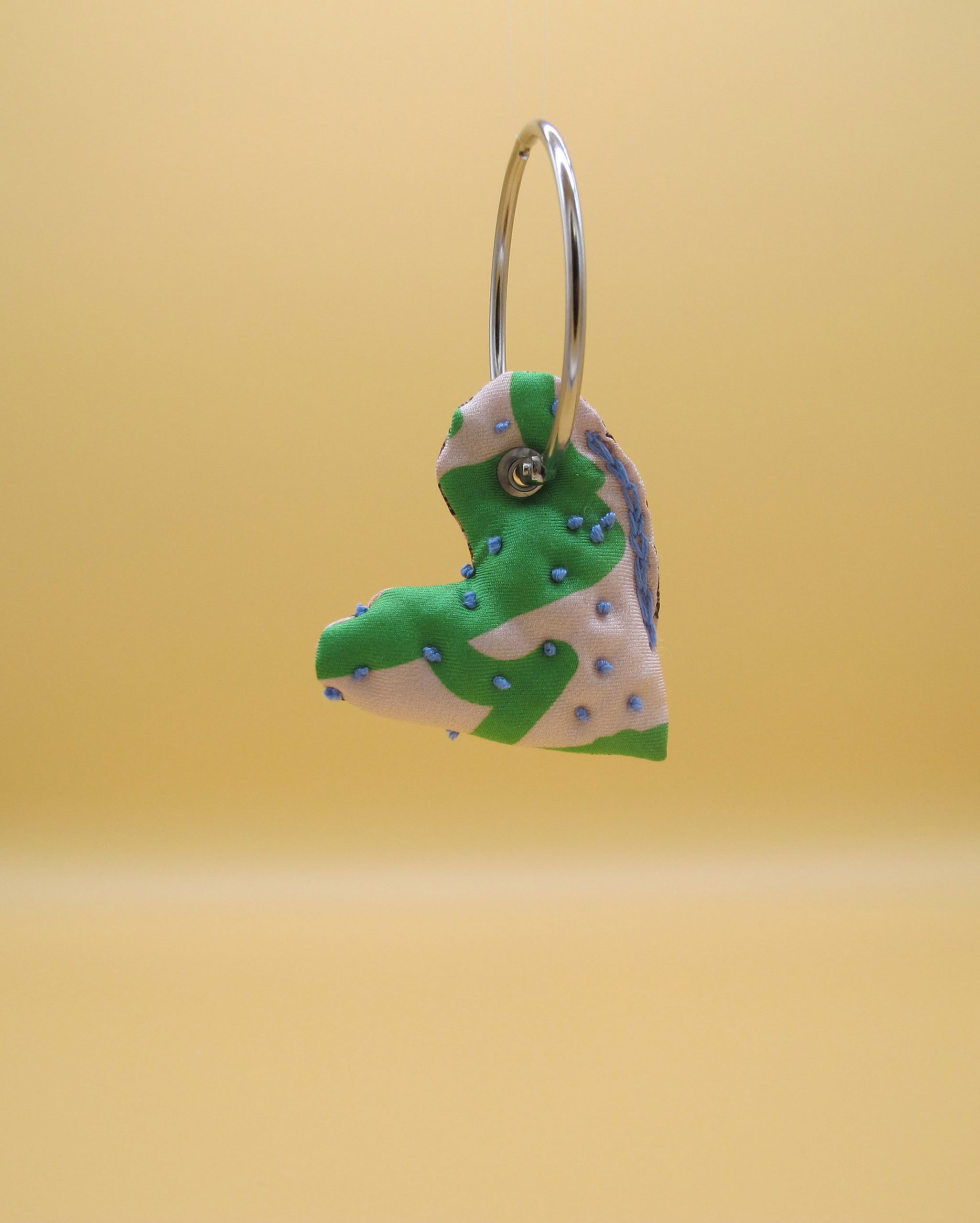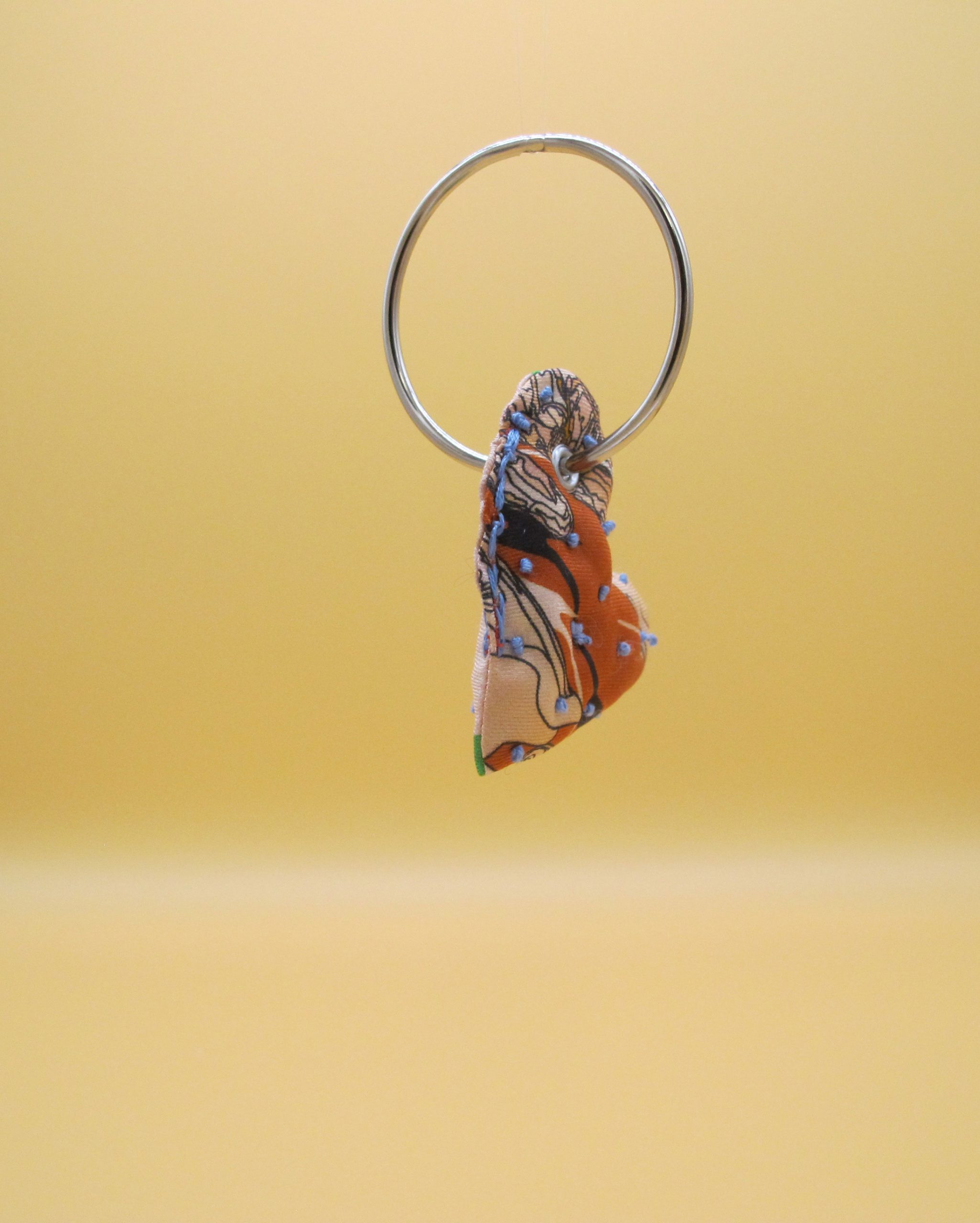 “Bag Charm” is hand made of repurposed hnyHANY silk twill foulards. This little friend for your hand bag was hand sewn, stuffed with soft wadding and hand embroidered in Berlin. Every piece is unique.
