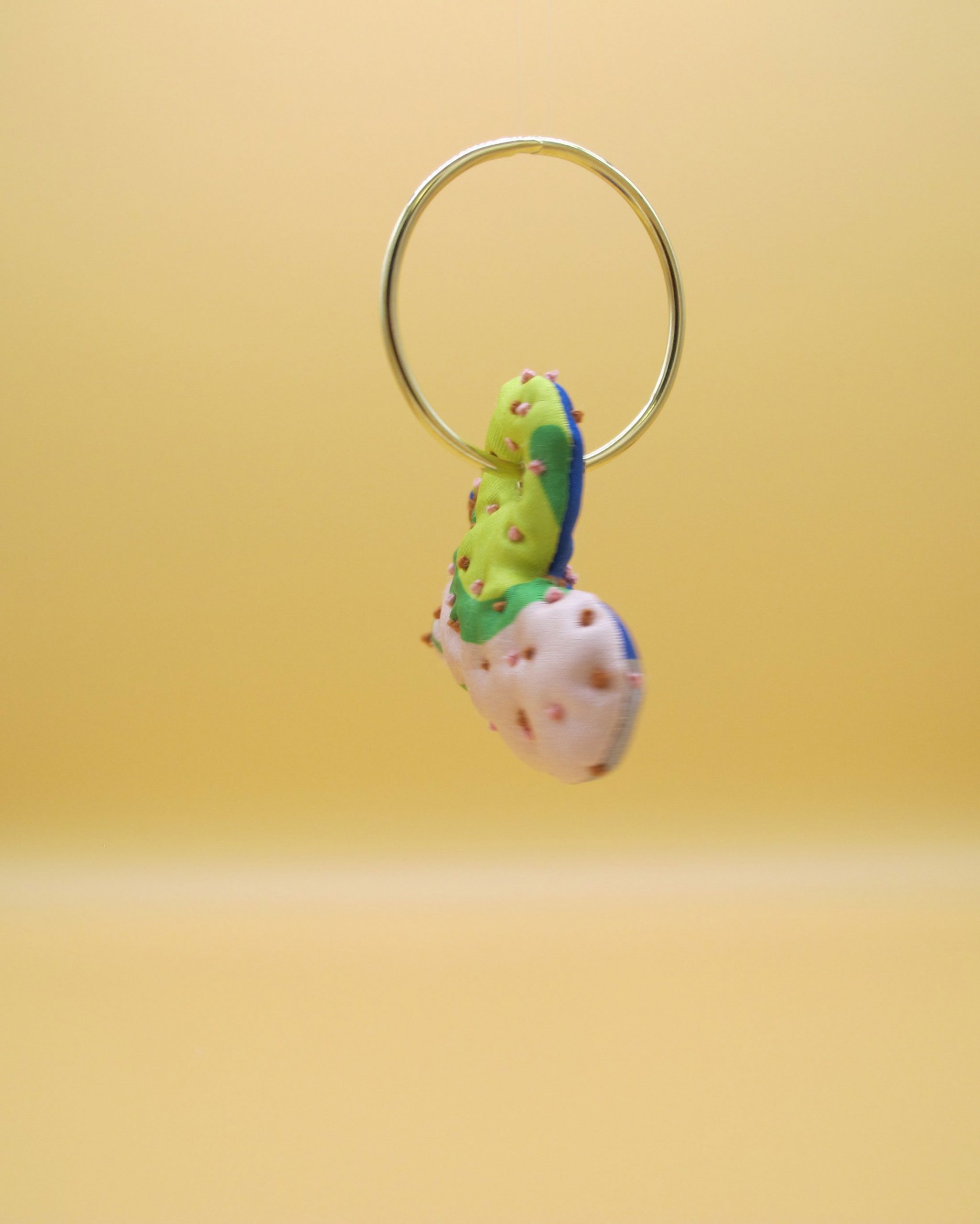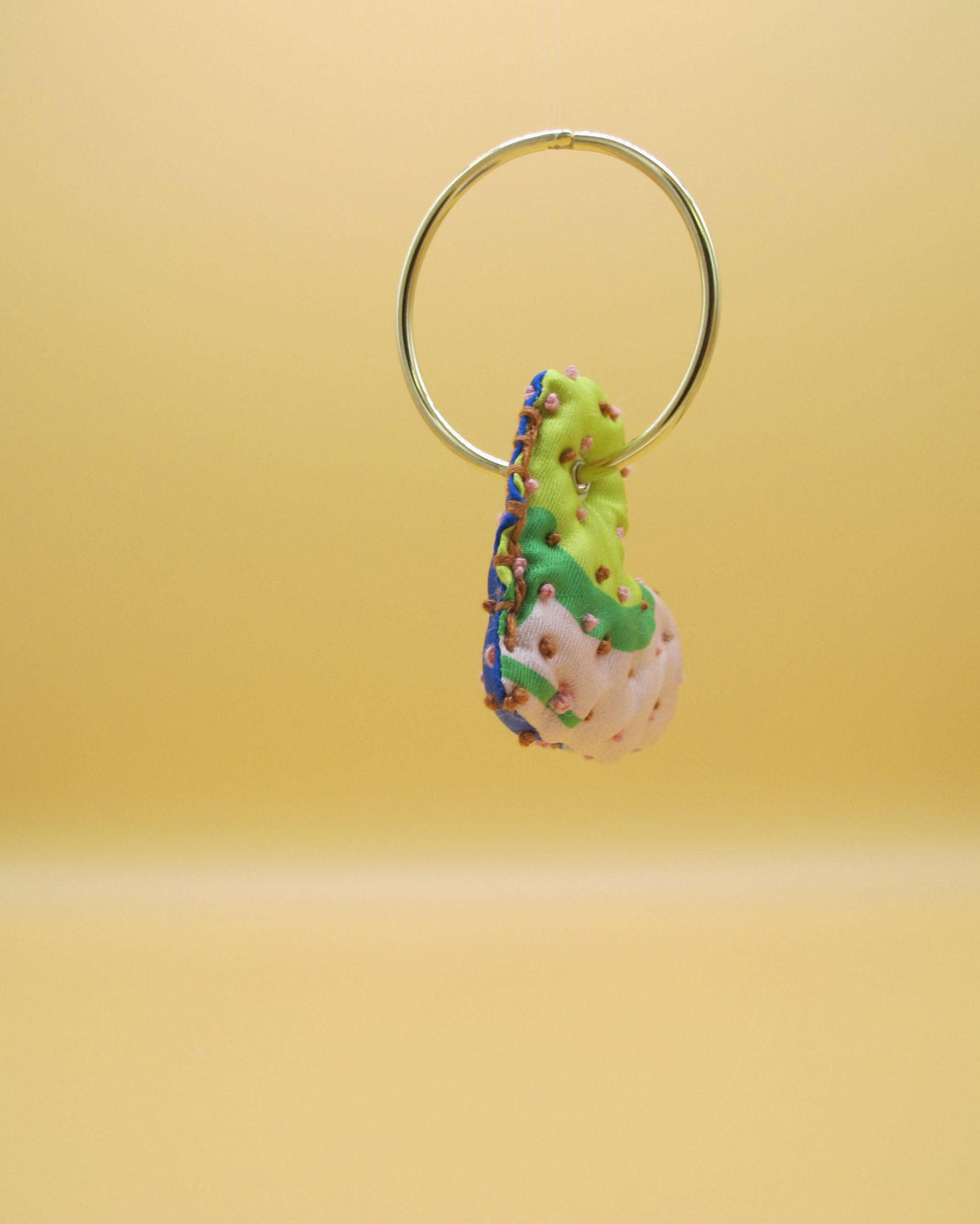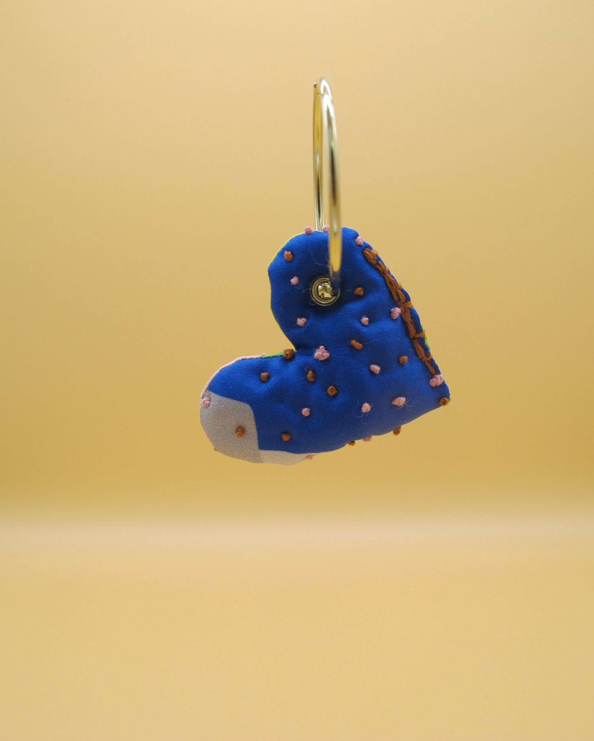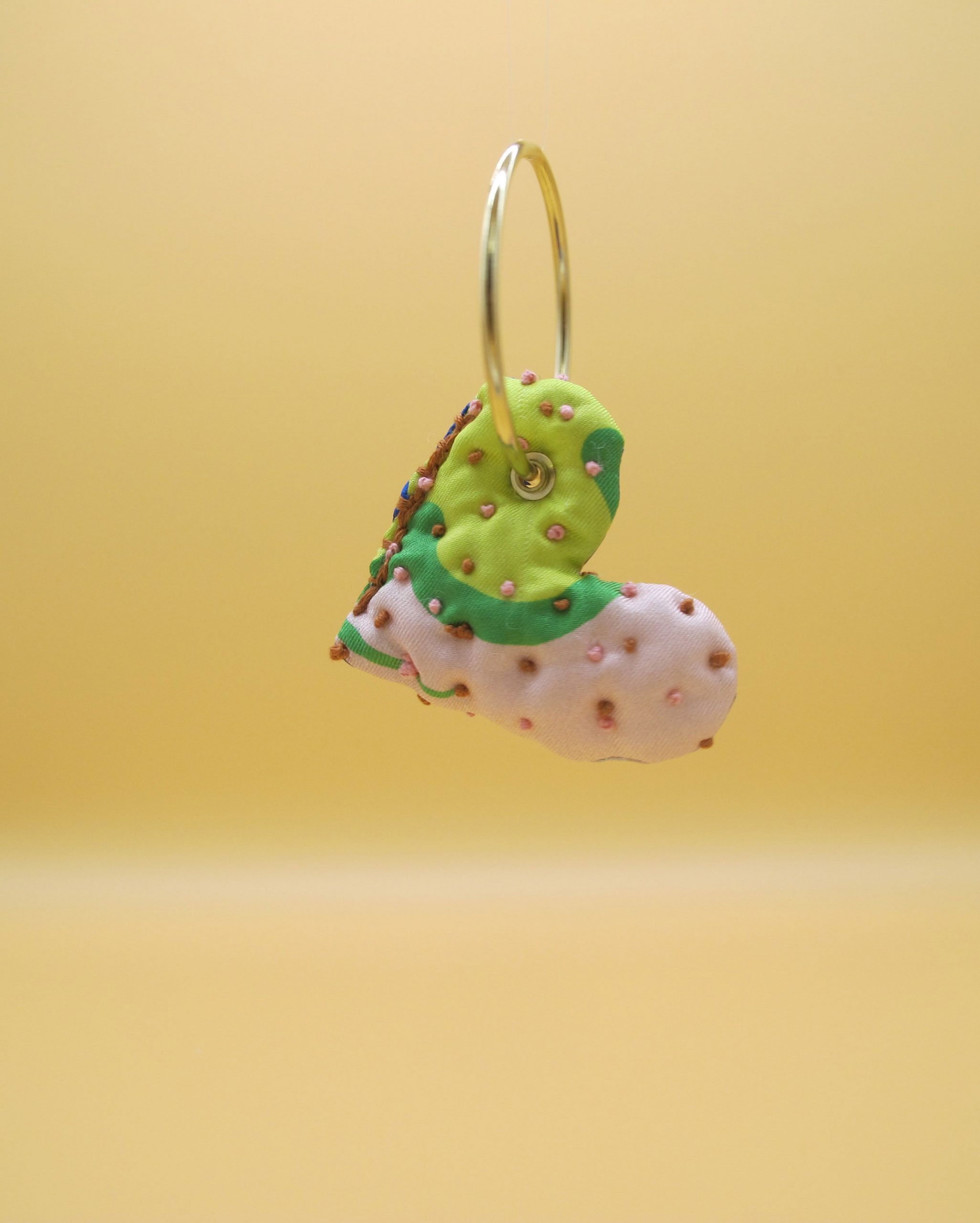 “Bag Charm” is hand made of repurposed hnyHANY silk twill foulards. This little friend for your hand bag was hand sewn, stuffed with soft wadding and hand embroidered in Berlin. Every piece is unique.