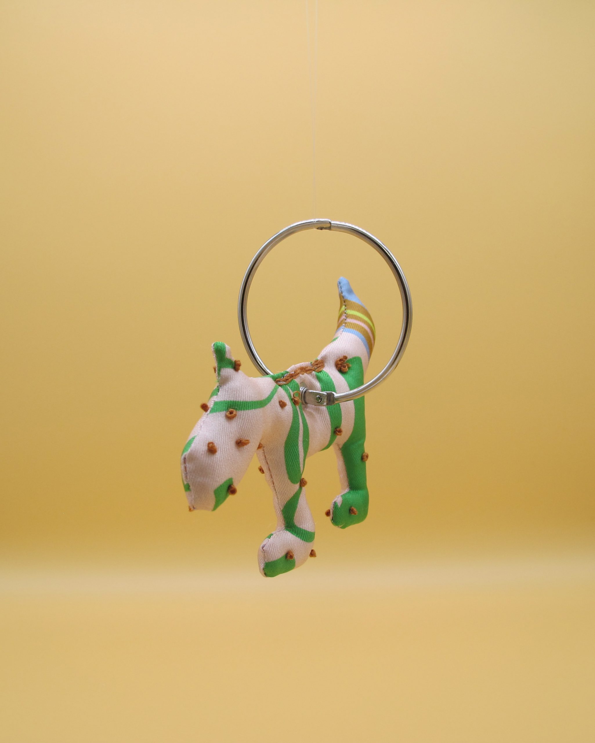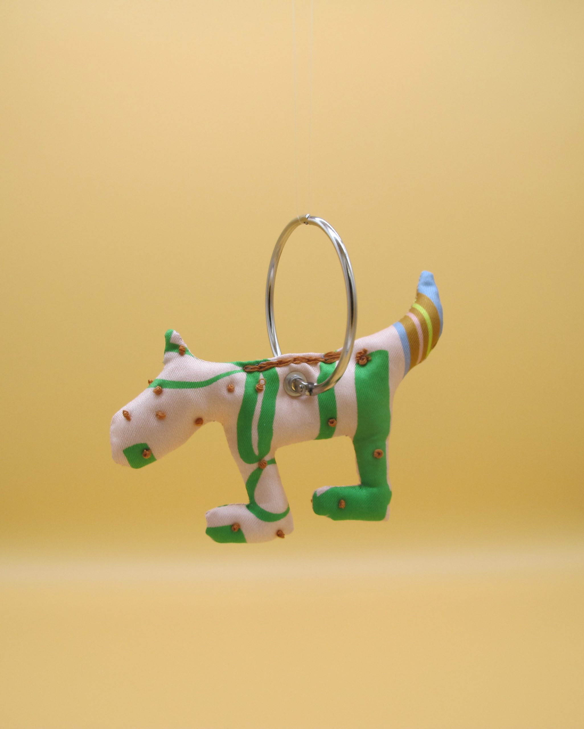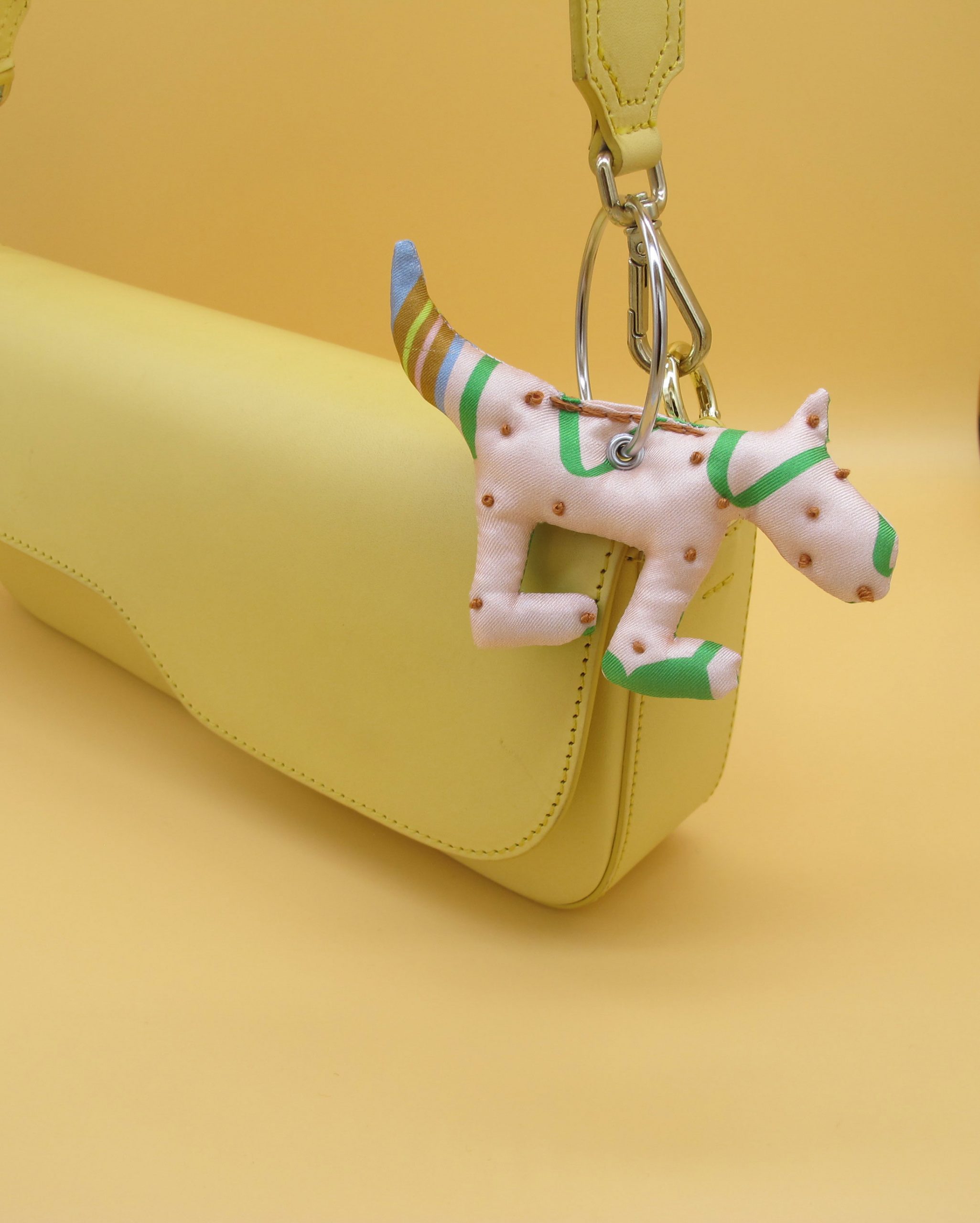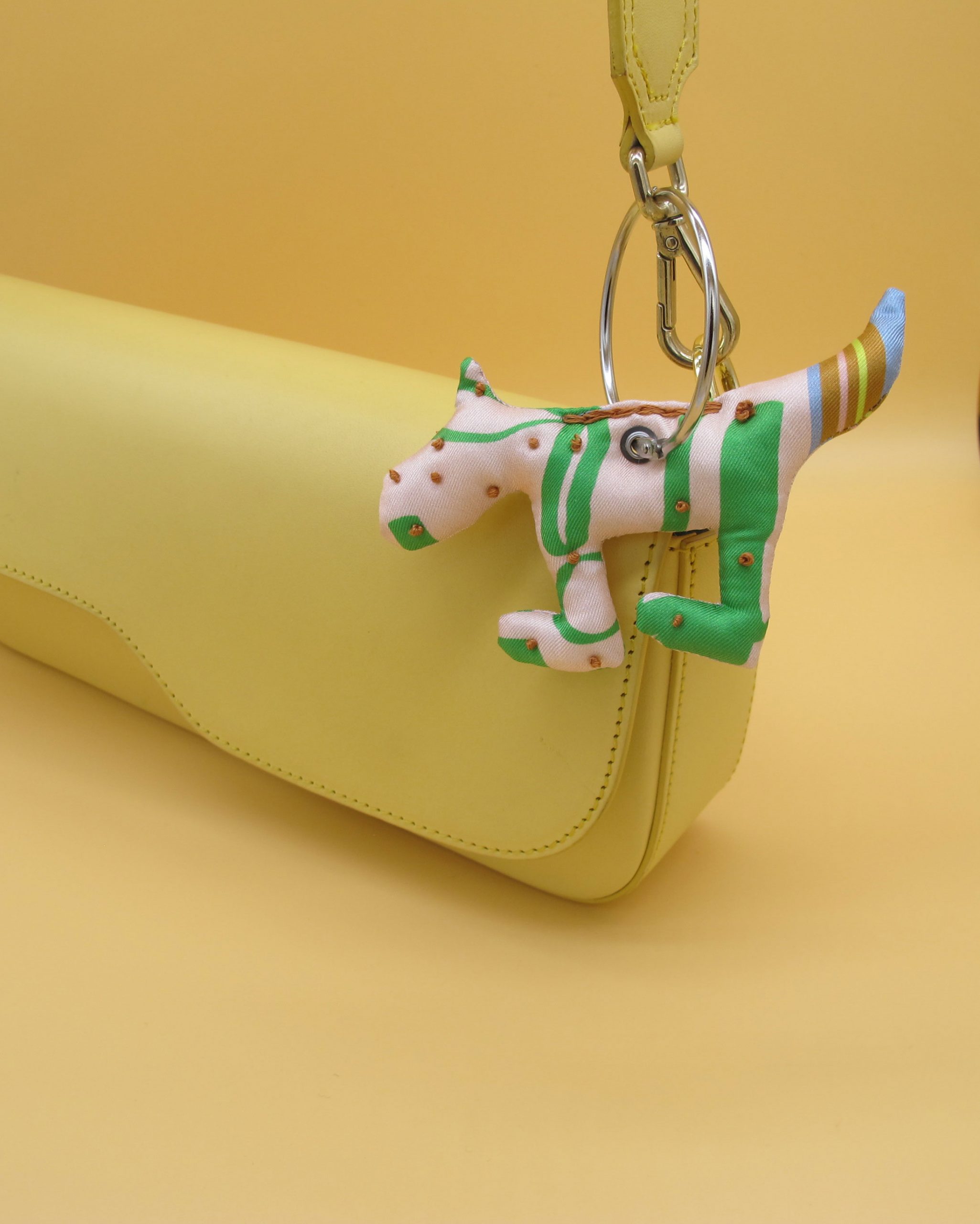 “Bag Charm” is hand made of repurposed hnyHANY silk twill foulards. This little friend for your hand bag was hand sewn, stuffed with soft wadding and hand embroidered in Berlin. Every piece is unique.