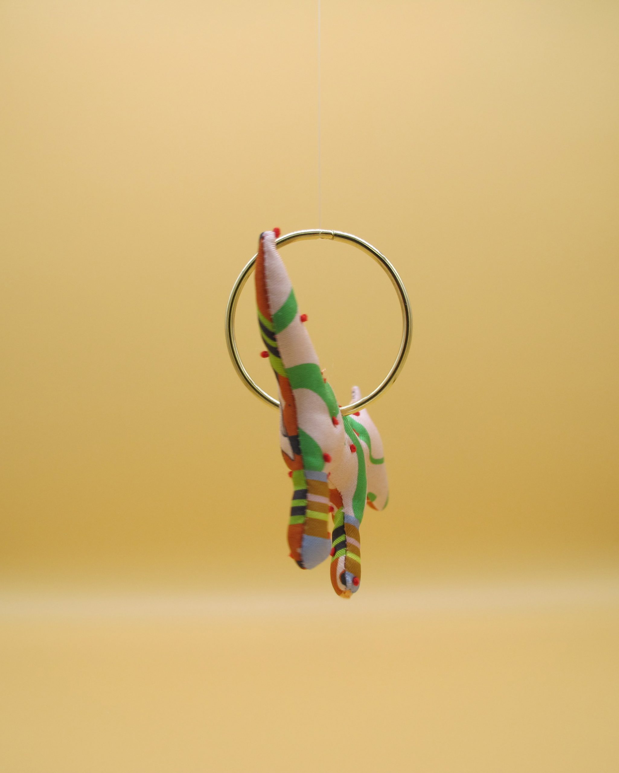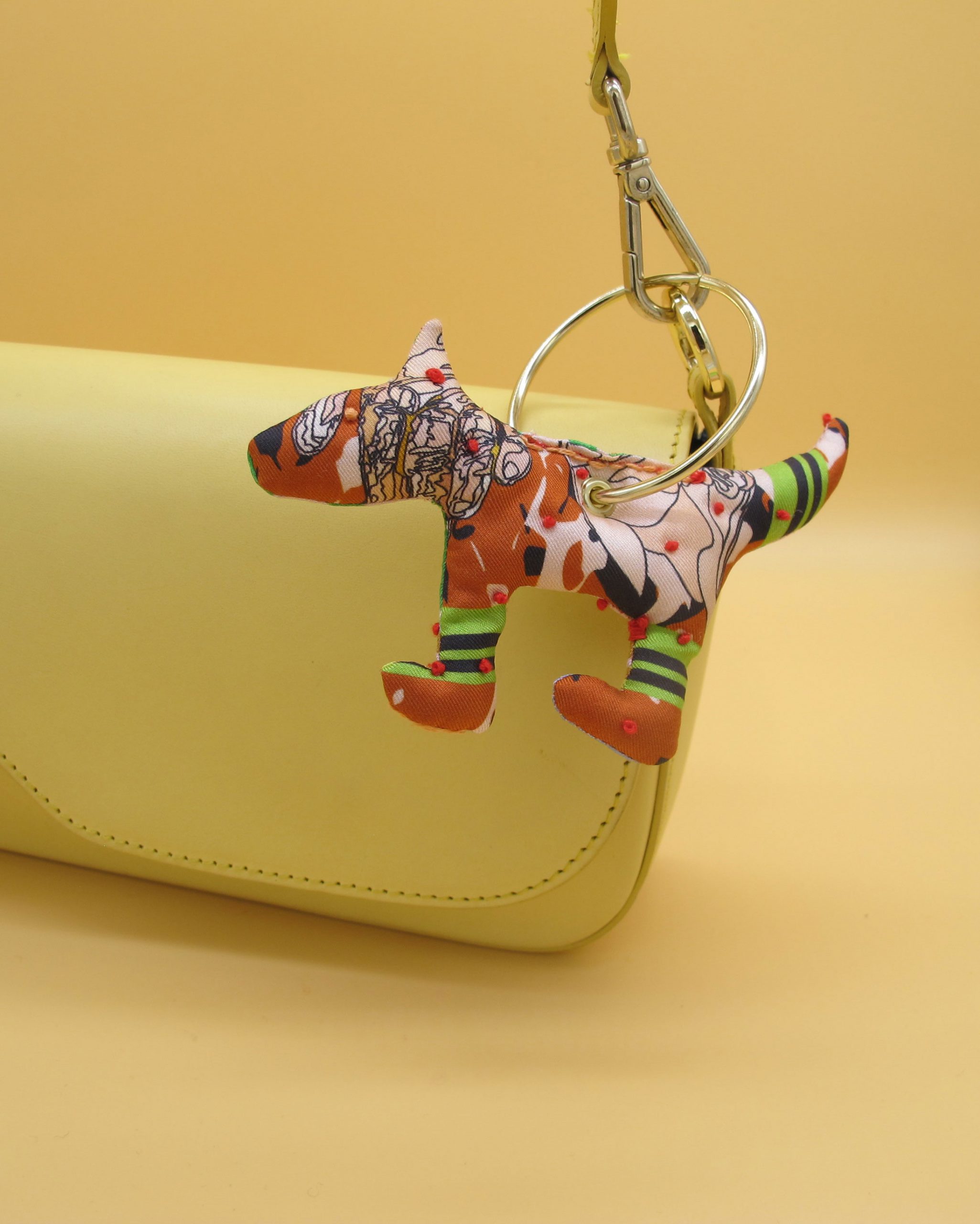 “Bag Charm” is hand made of repurposed hnyHANY silk twill foulards. This little friend for your hand bag was hand sewn, stuffed with soft wadding and hand embroidered in Berlin. Every piece is unique.