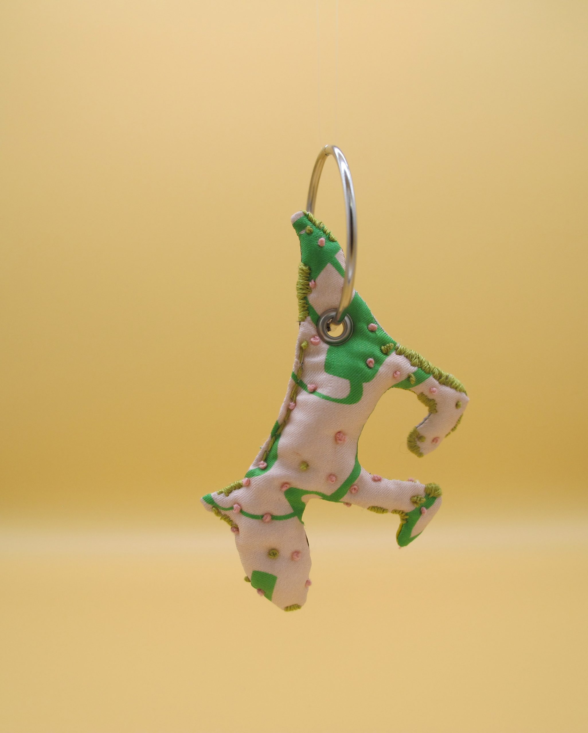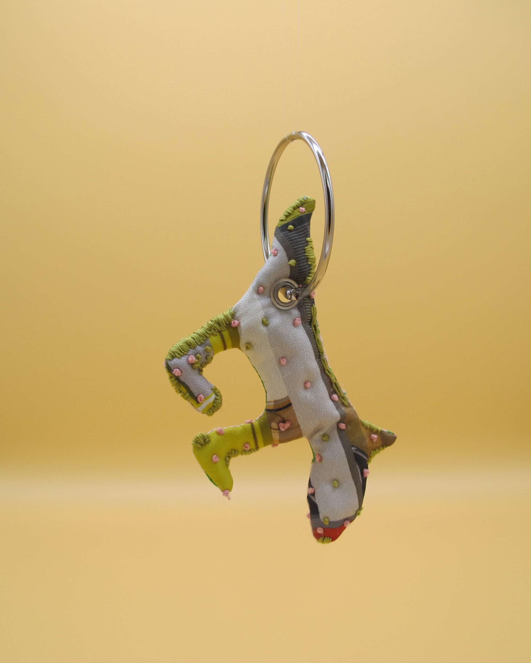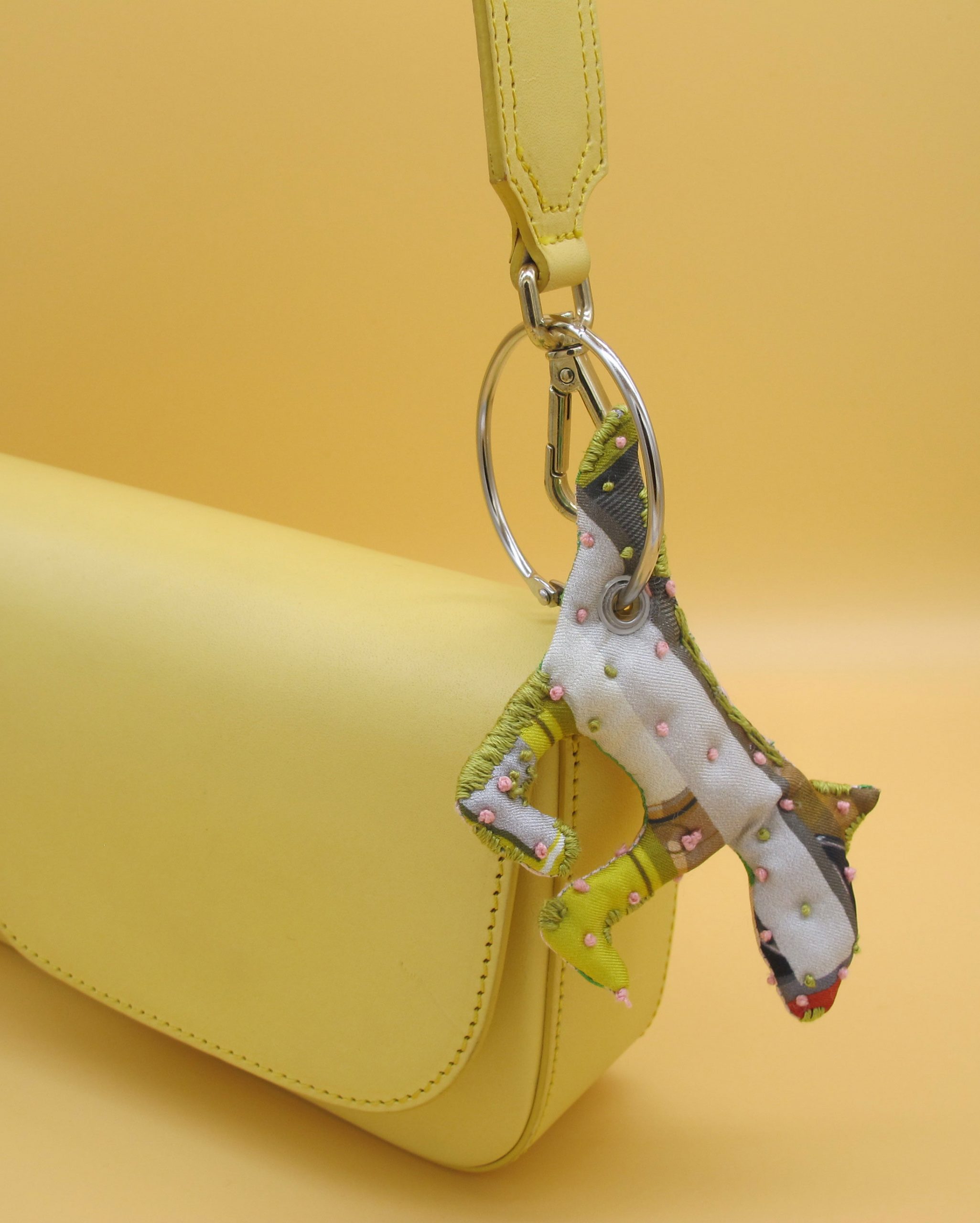 “Bag Charm” is hand made of repurposed hnyHANY silk twill foulards. This little friend for your hand bag was hand sewn, stuffed with soft wadding and hand embroidered in Berlin. Every piece is unique.