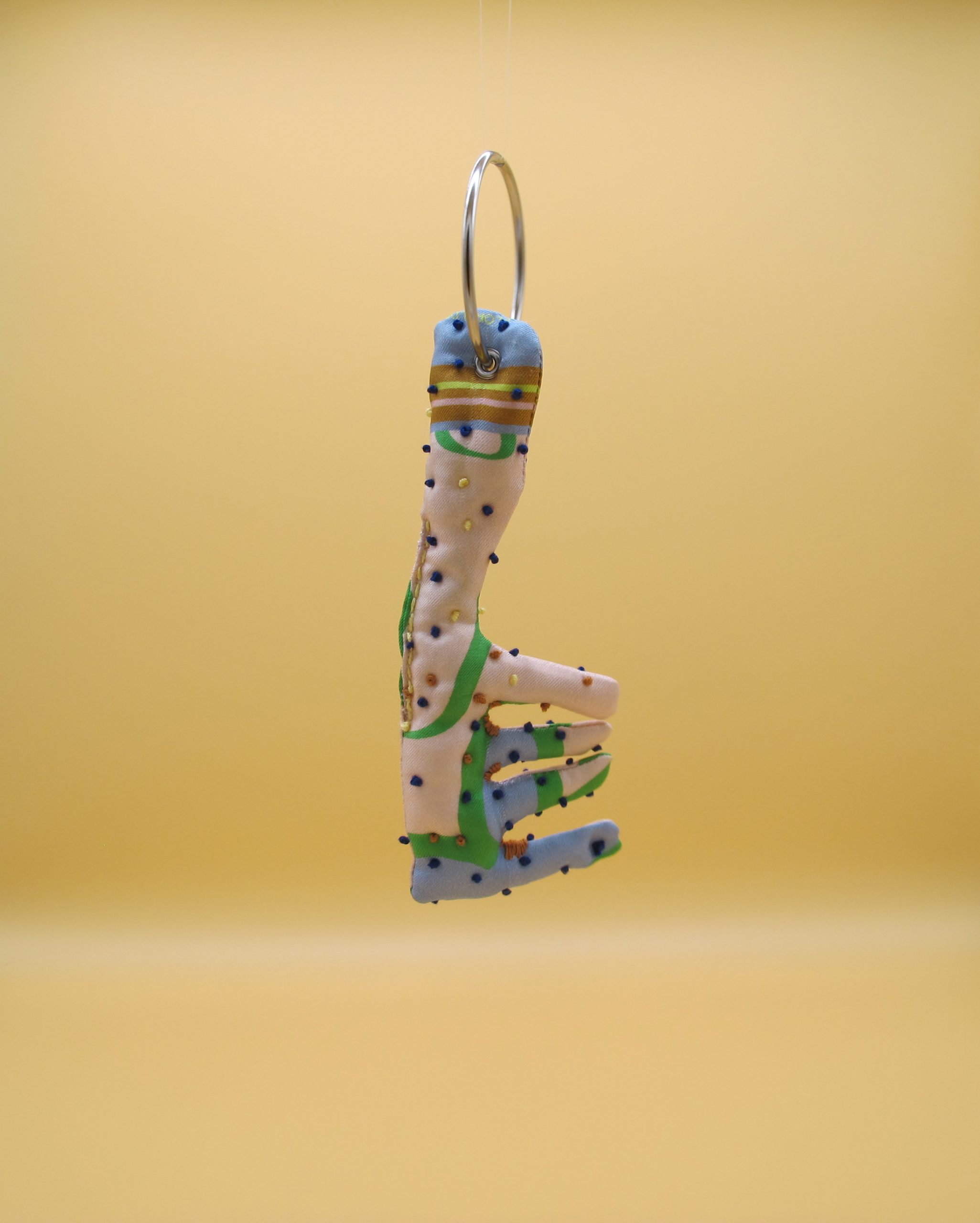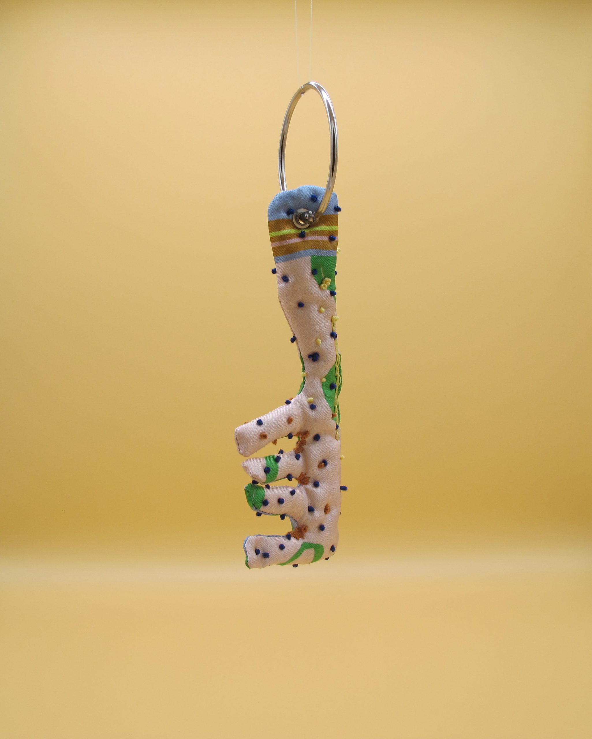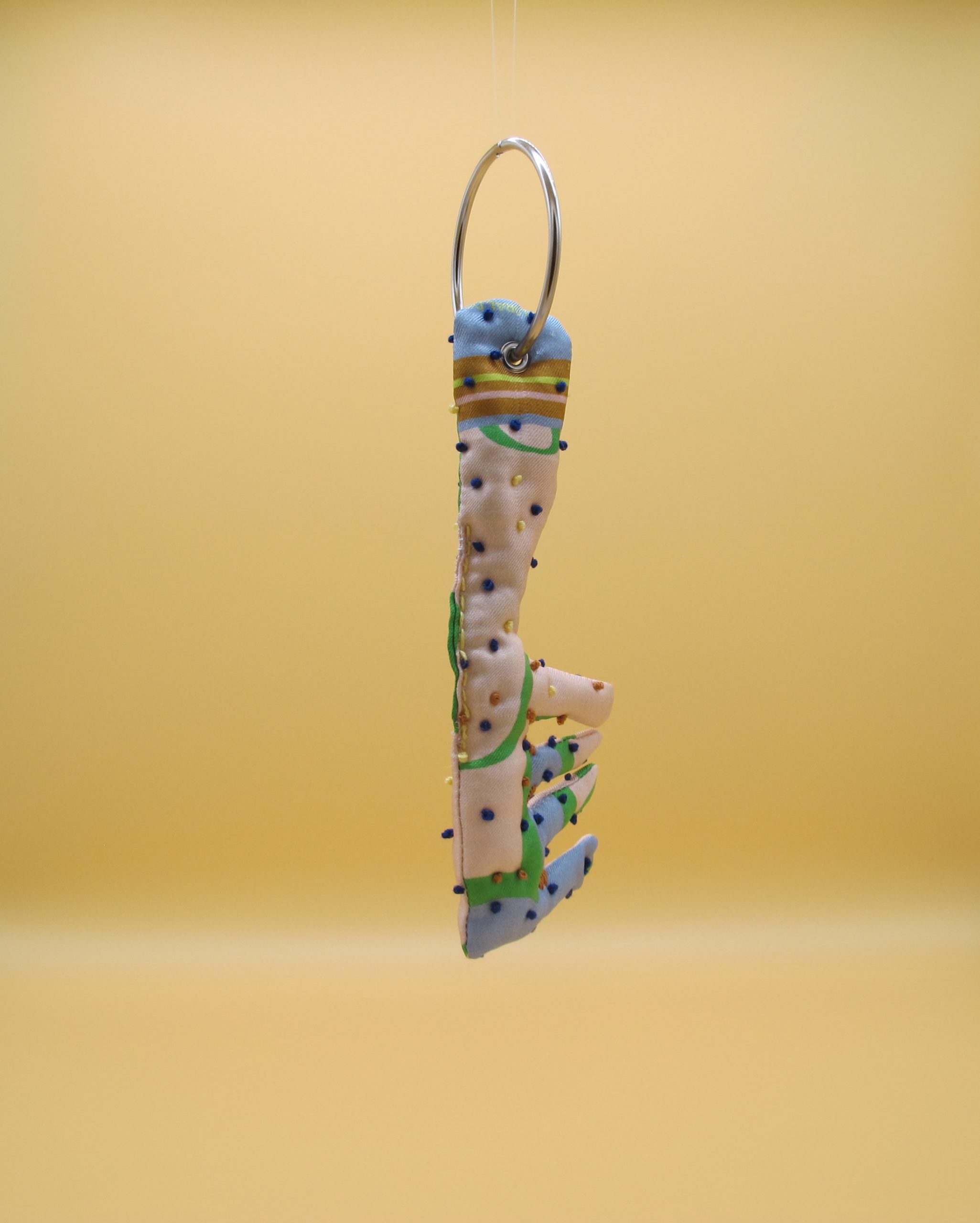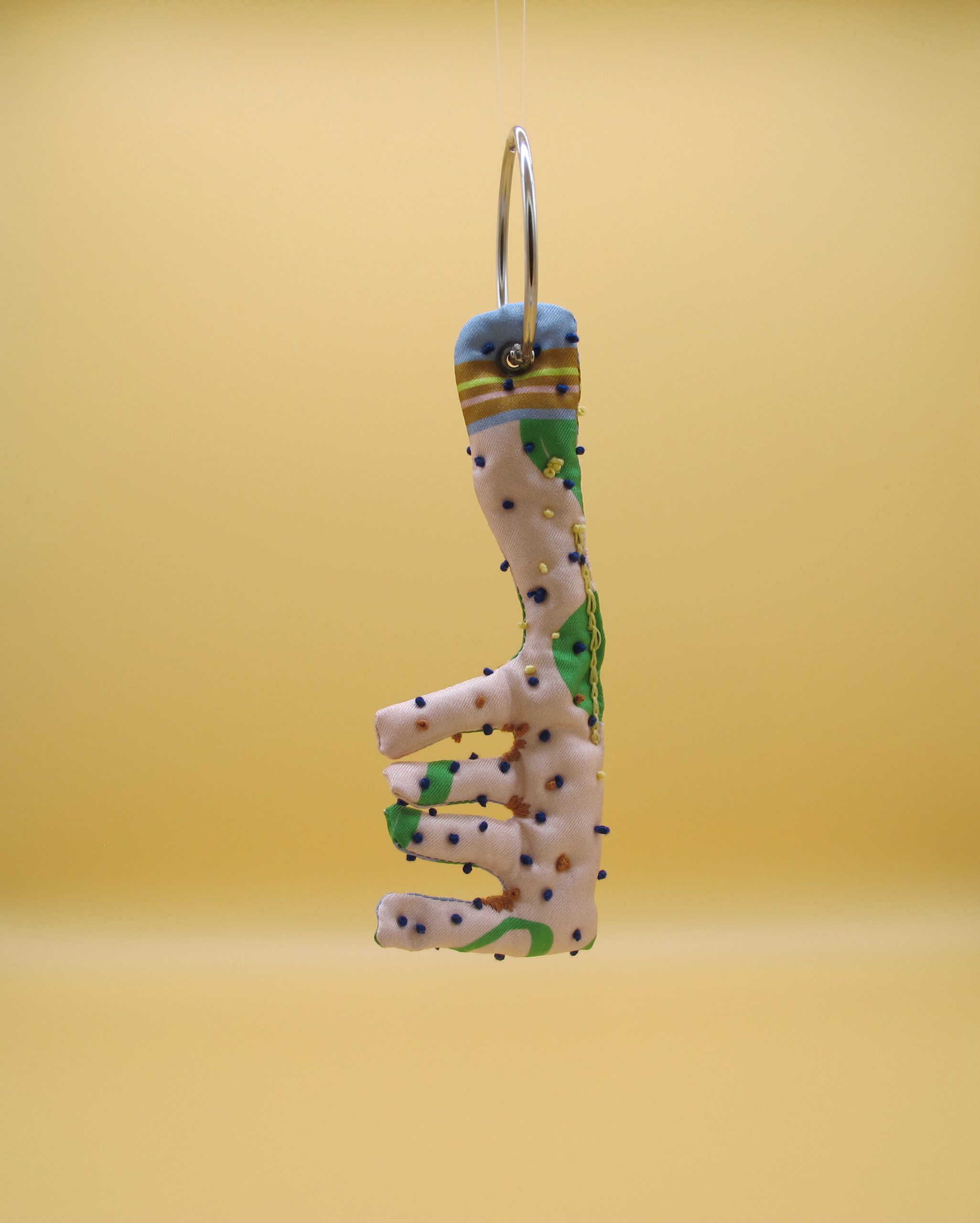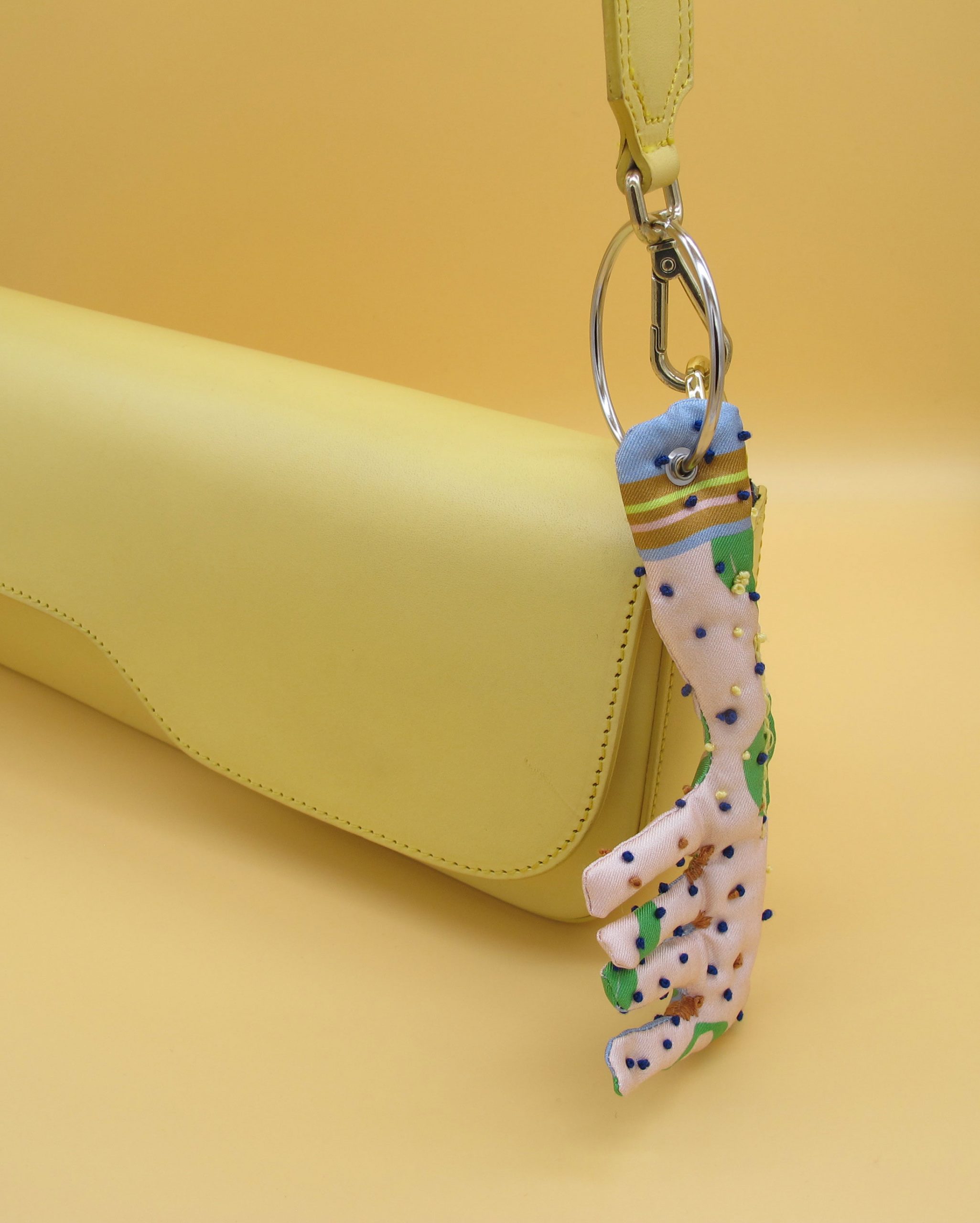 “Bag Charm” is hand made of repurposed hnyHANY silk twill foulards. This little friend for your hand bag was hand sewn, stuffed with soft wadding and hand embroidered in Berlin. Every piece is unique.