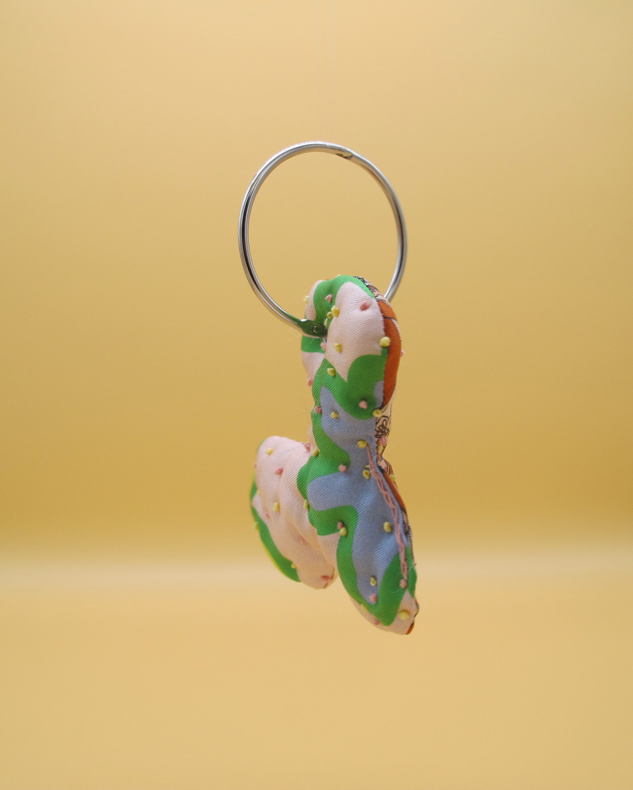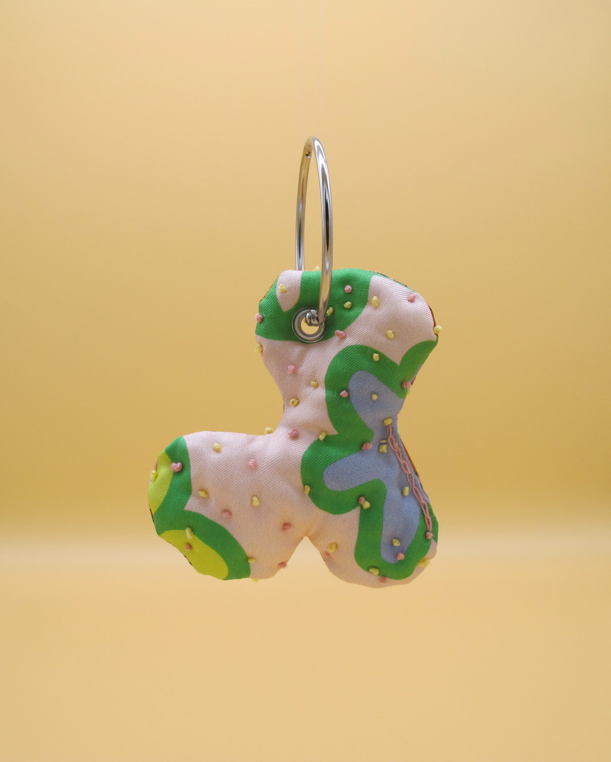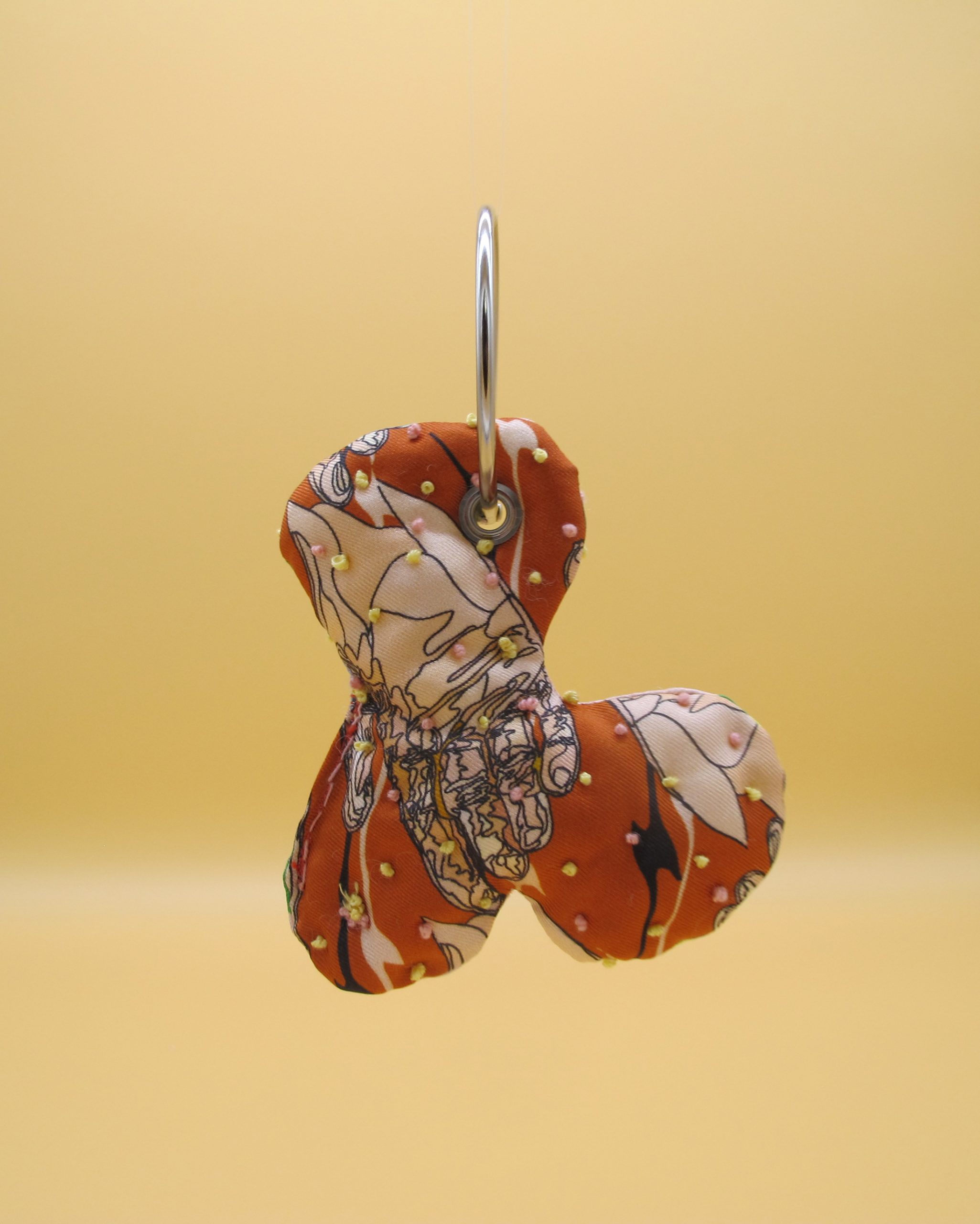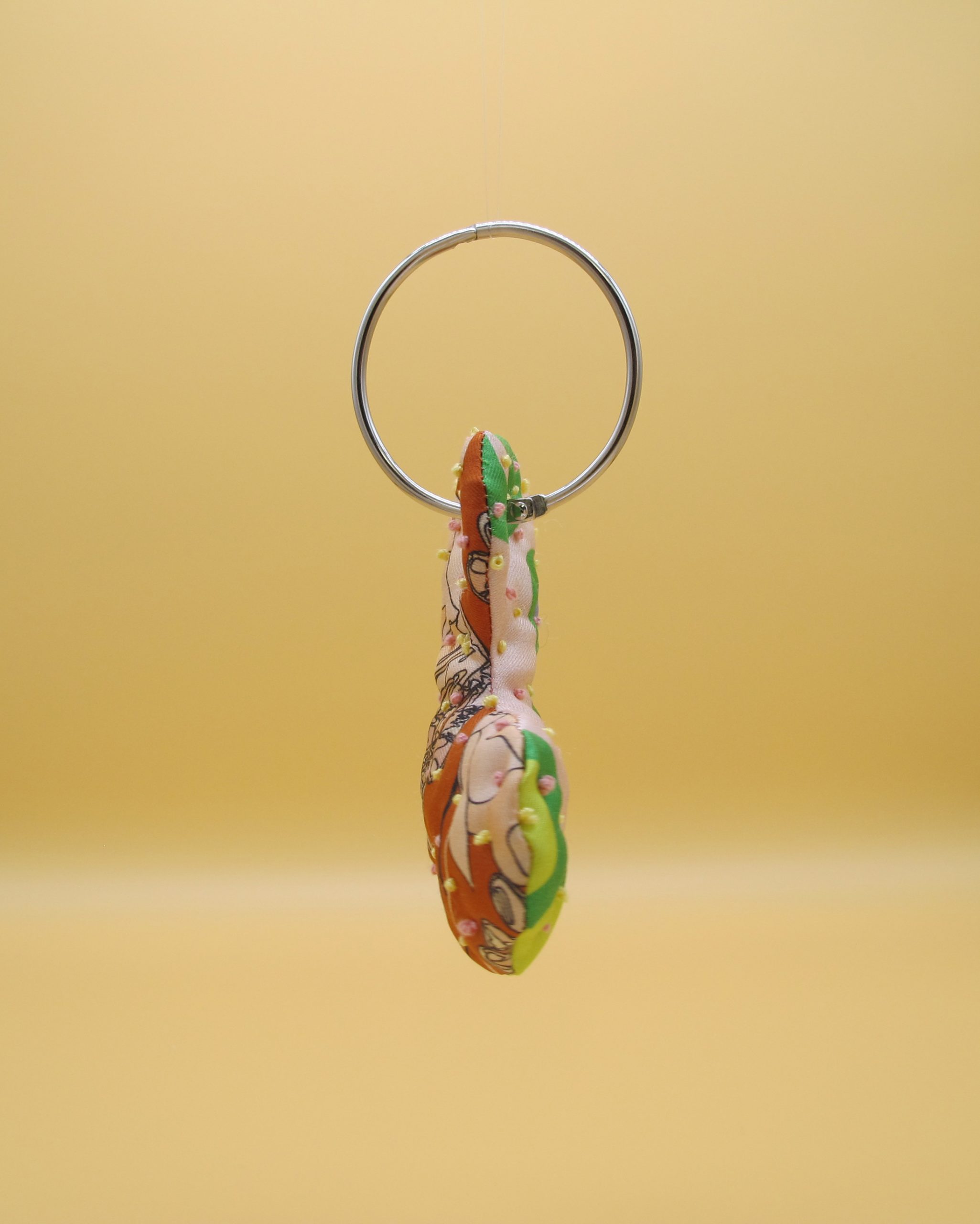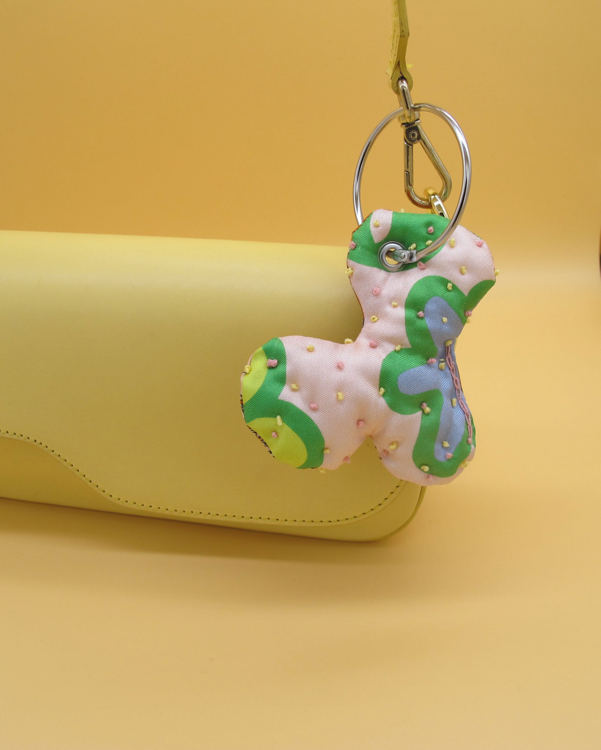 “Bag Charm” is hand made of repurposed hnyHANY silk twill foulards. This little friend for your hand bag was hand sewn, stuffed with soft wadding and hand embroidered in Berlin. Every piece is unique.