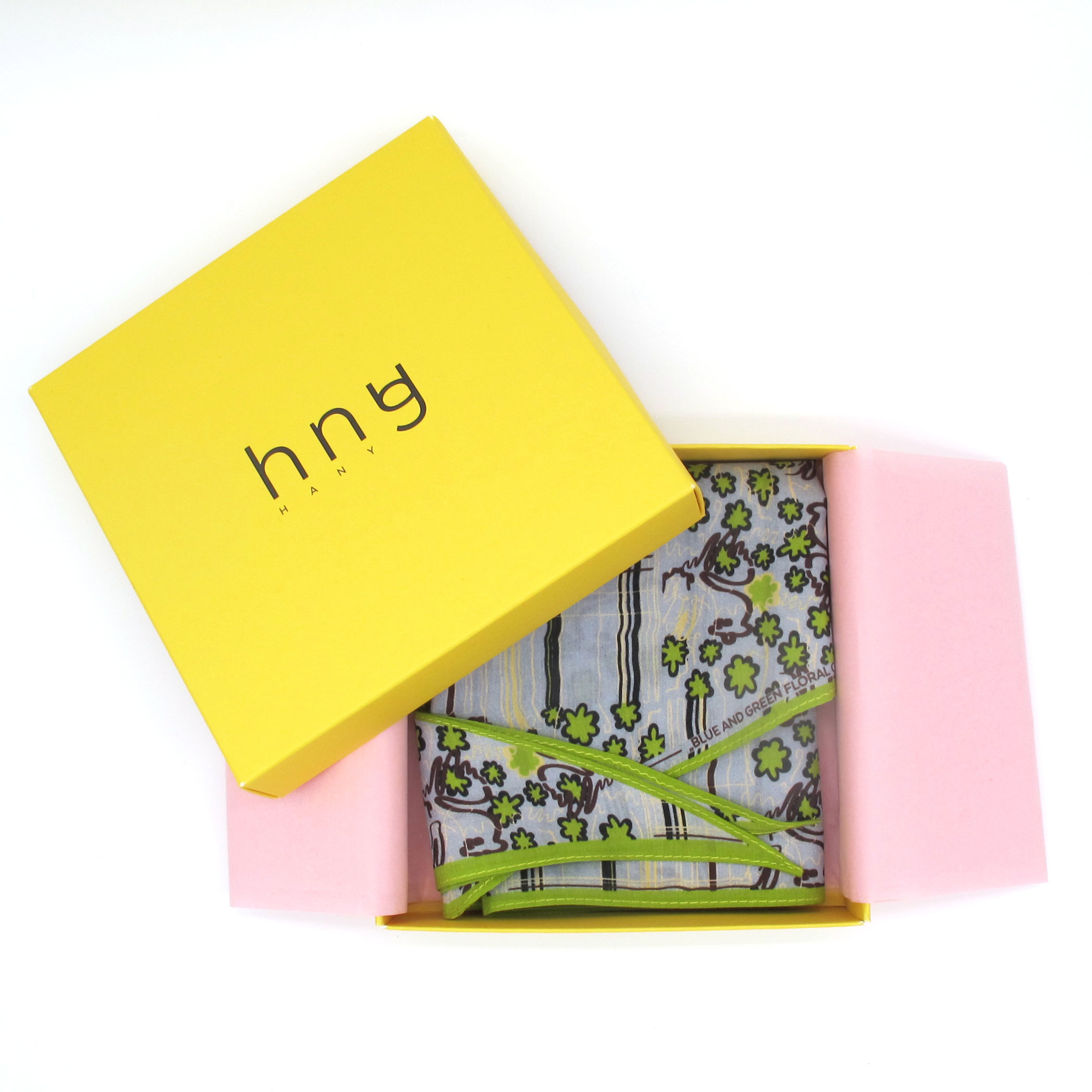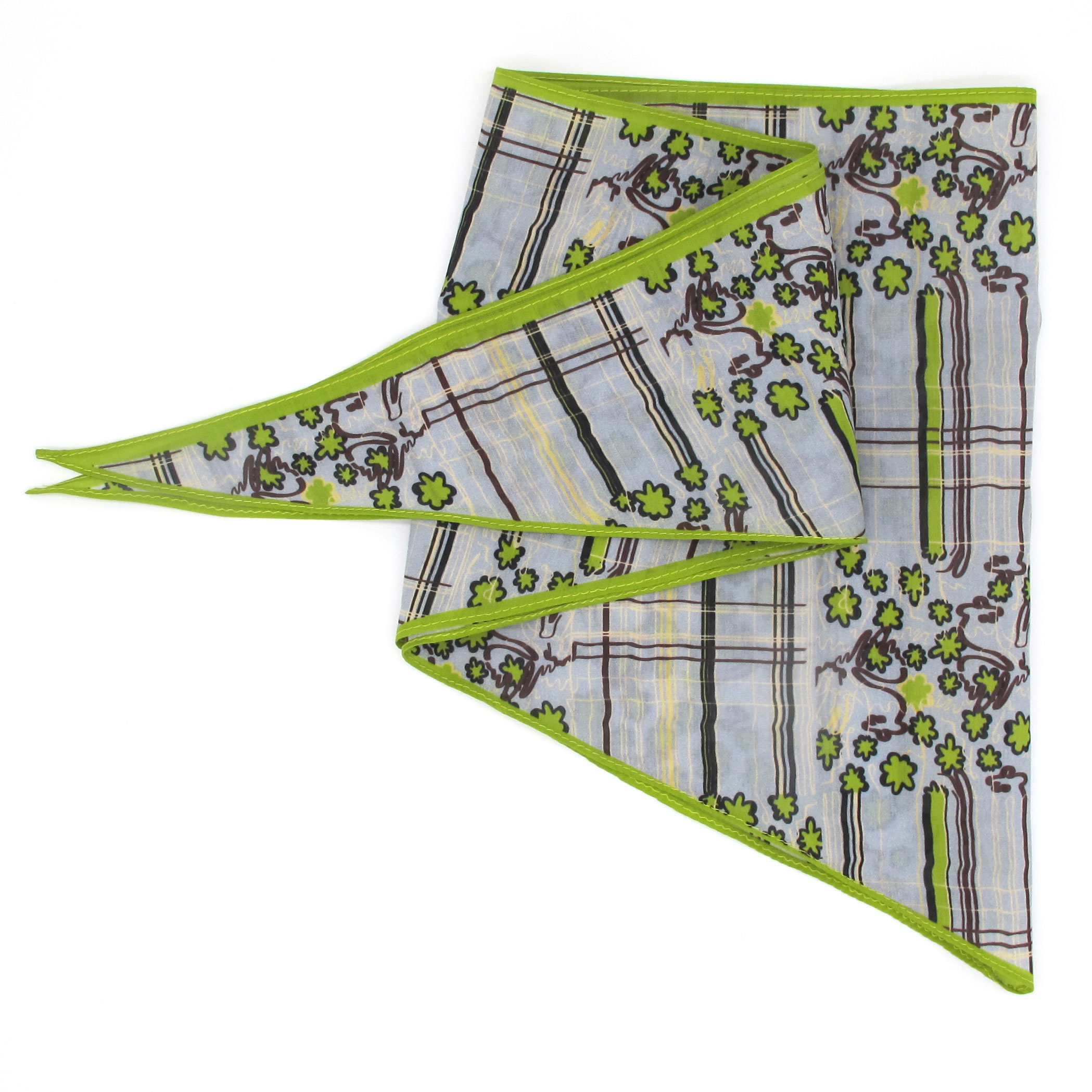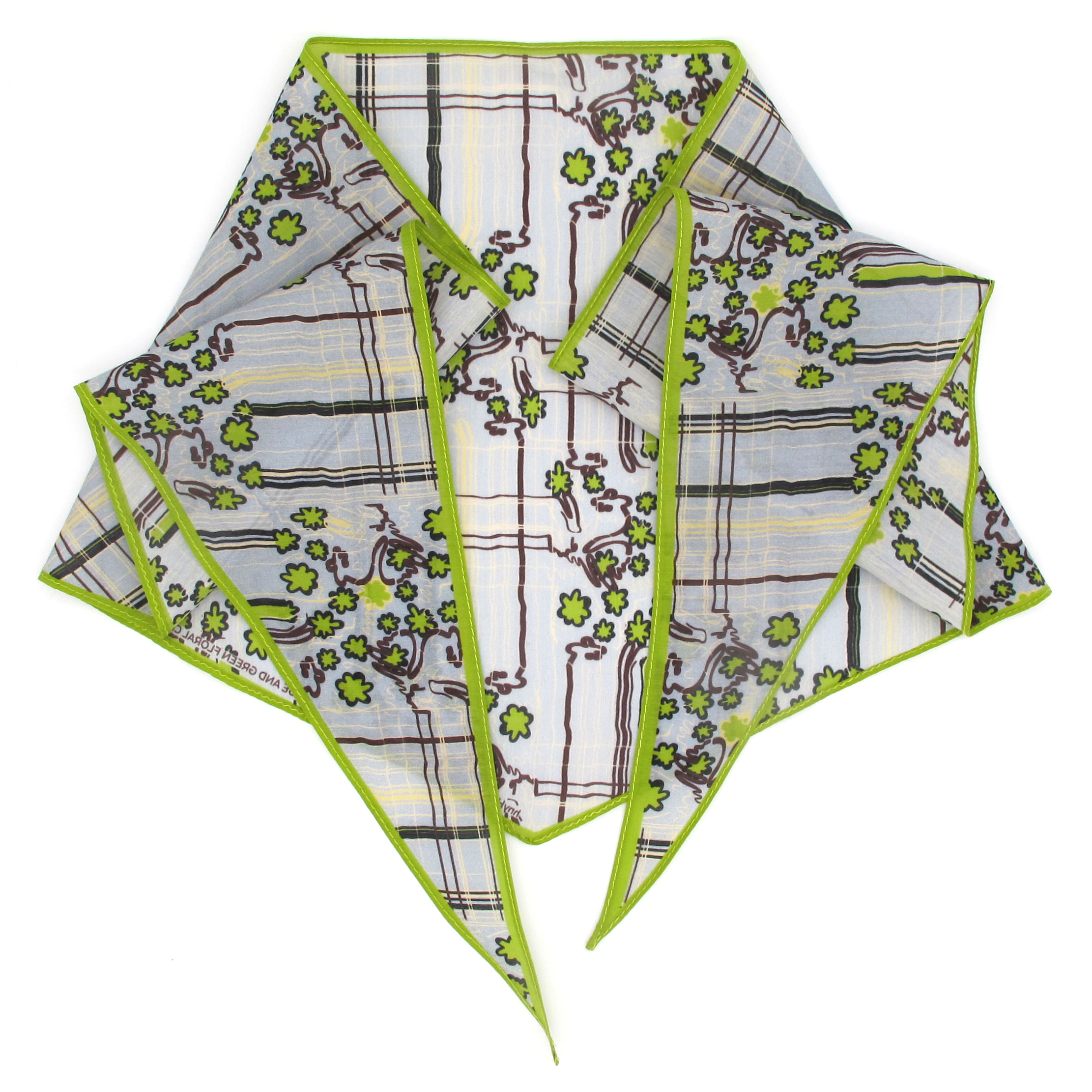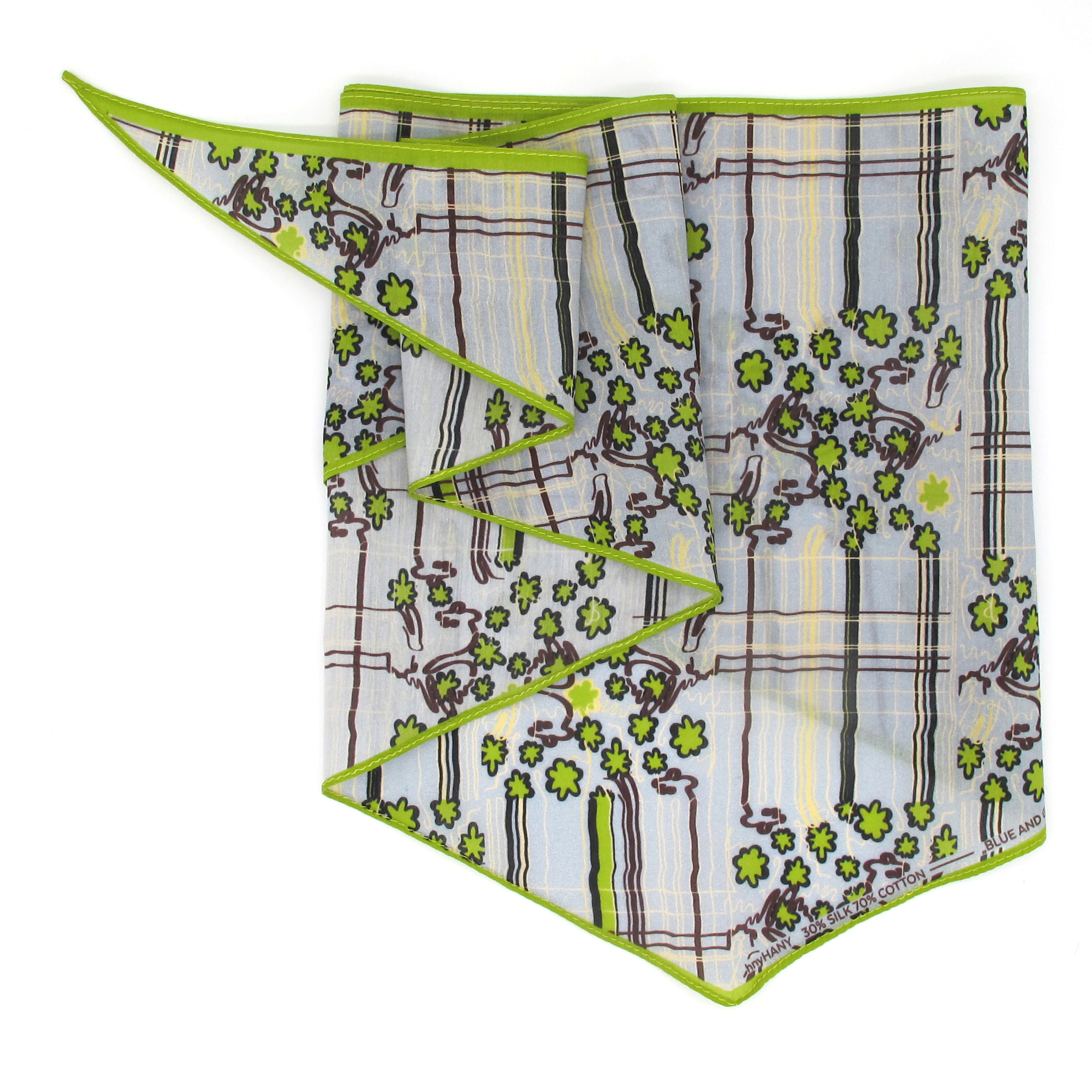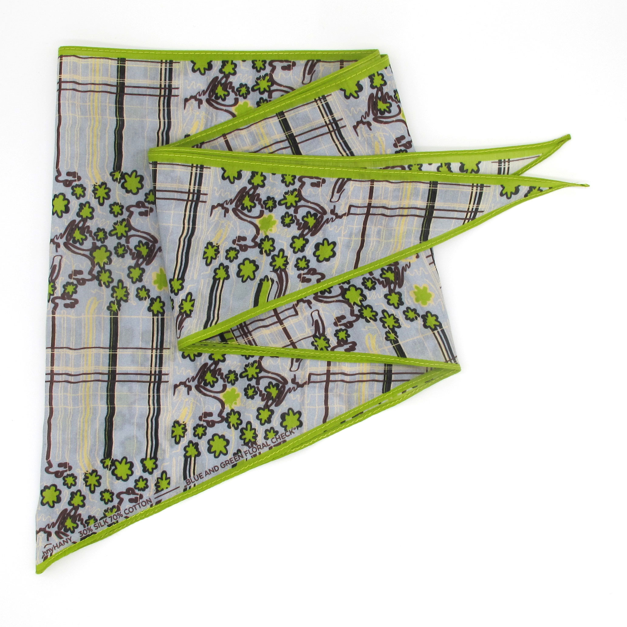 “Triangle” scarf is made of a super soft and light silk and cotton blend featuring the Blue & Green Floral Check print.