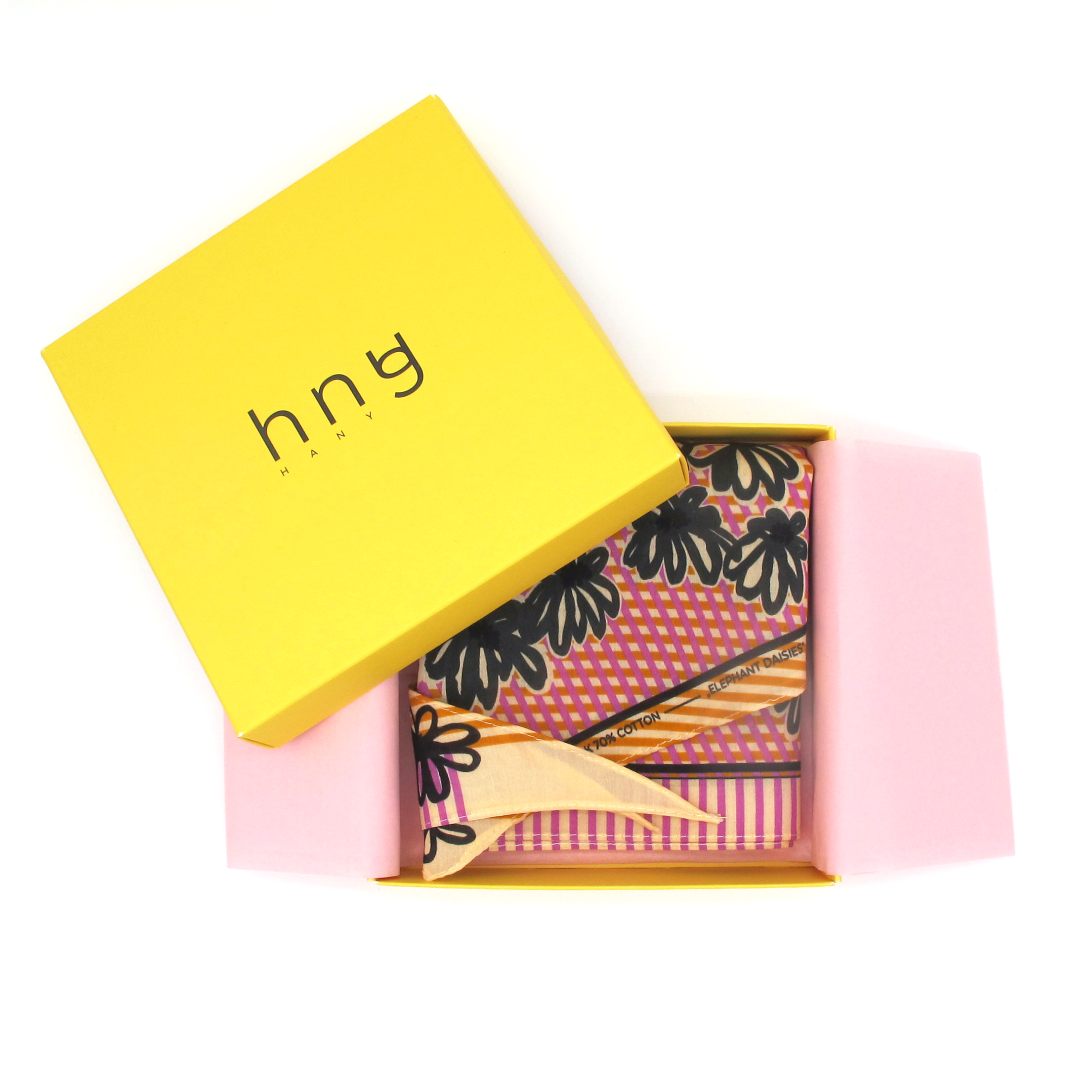 Our Triangle scarves are carefully printed and finished in silks home country China.
