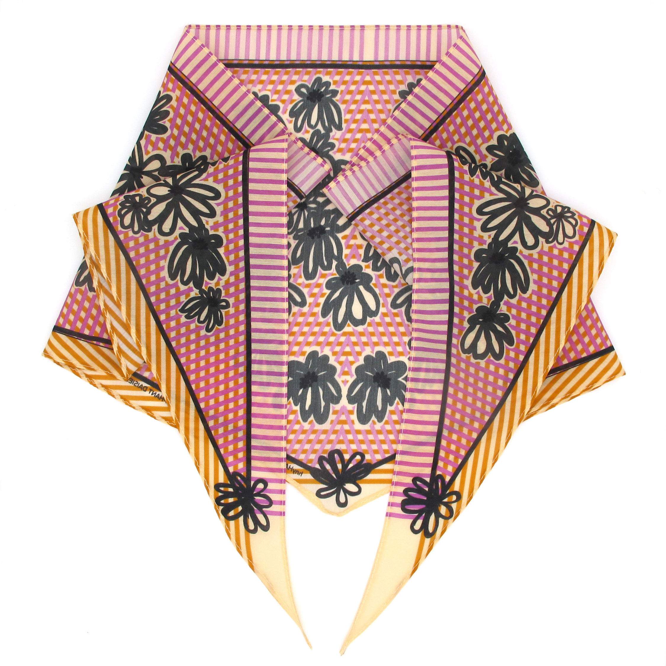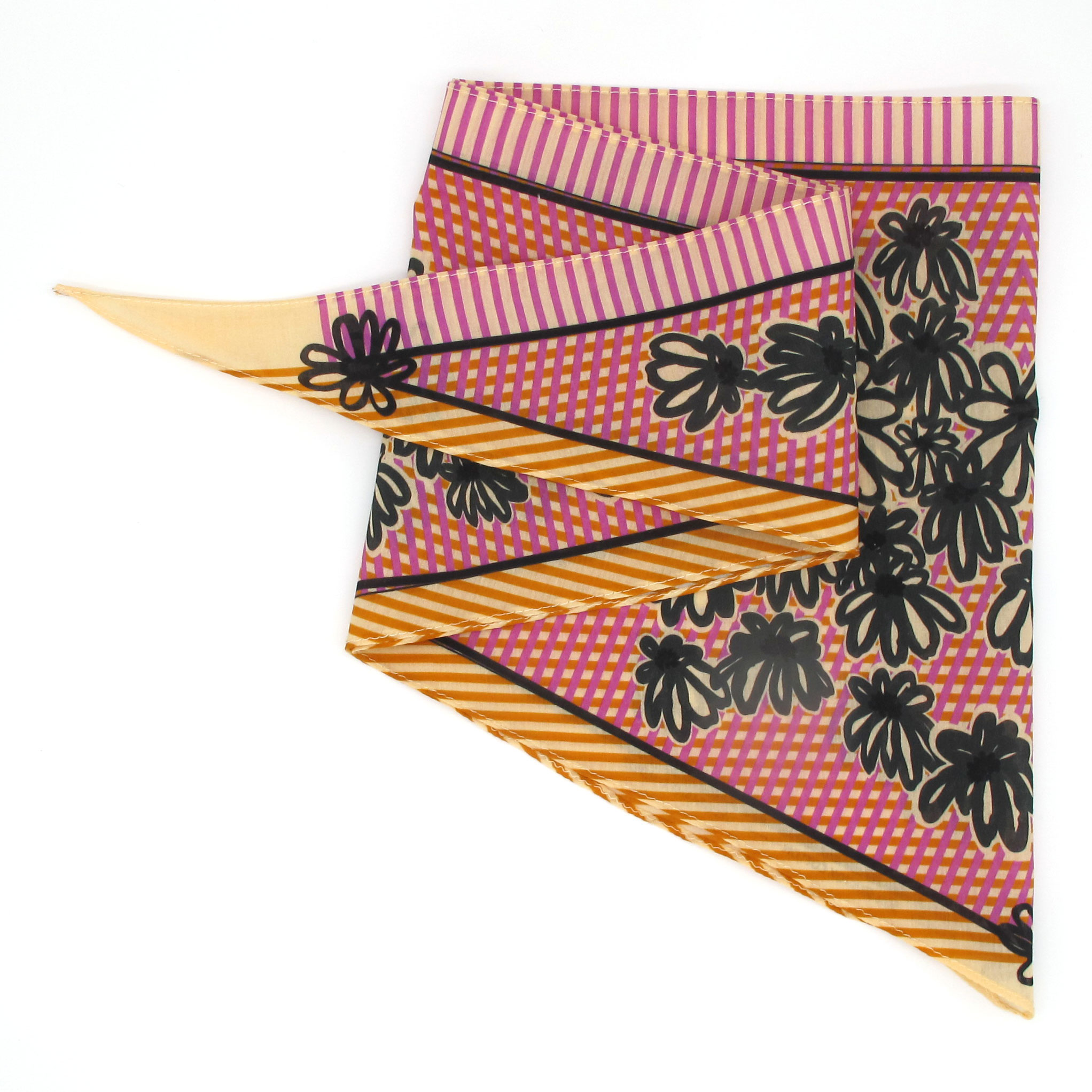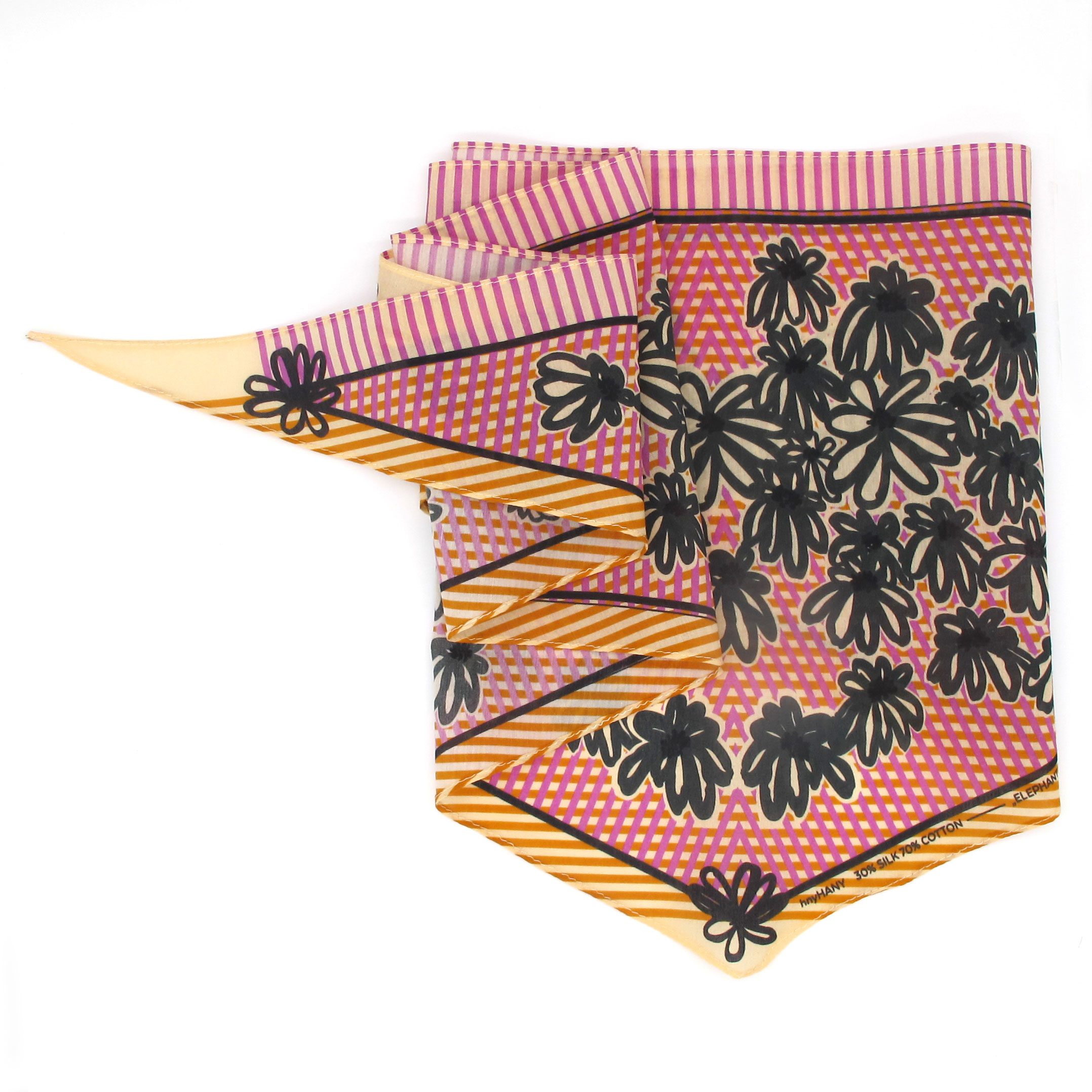 “Triangle” scarf is made of a super soft and light silk and cotton blend featuring the Elephant Daisies print.