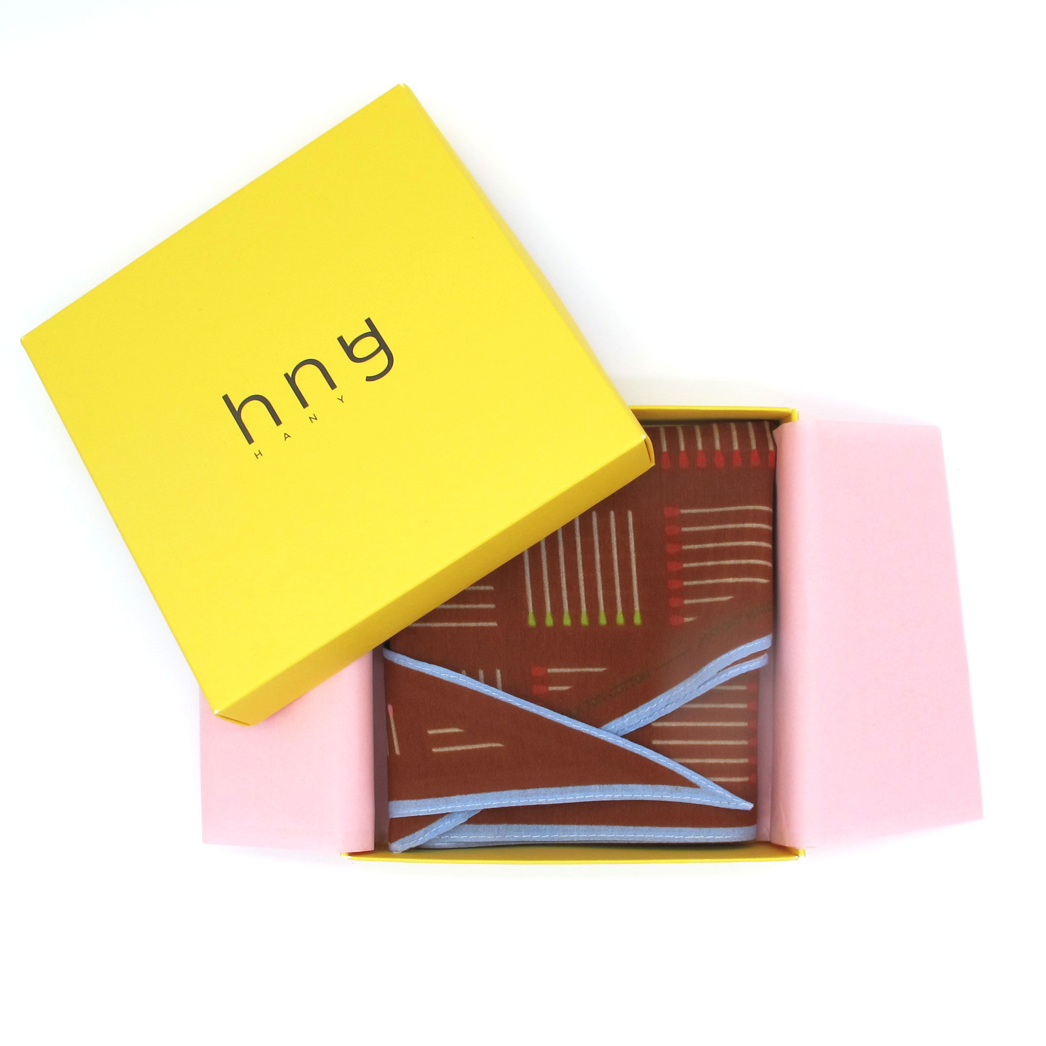“Triangle” scarf is made of a super soft and light silk and cotton blend featuring the Matchy Matchy print.