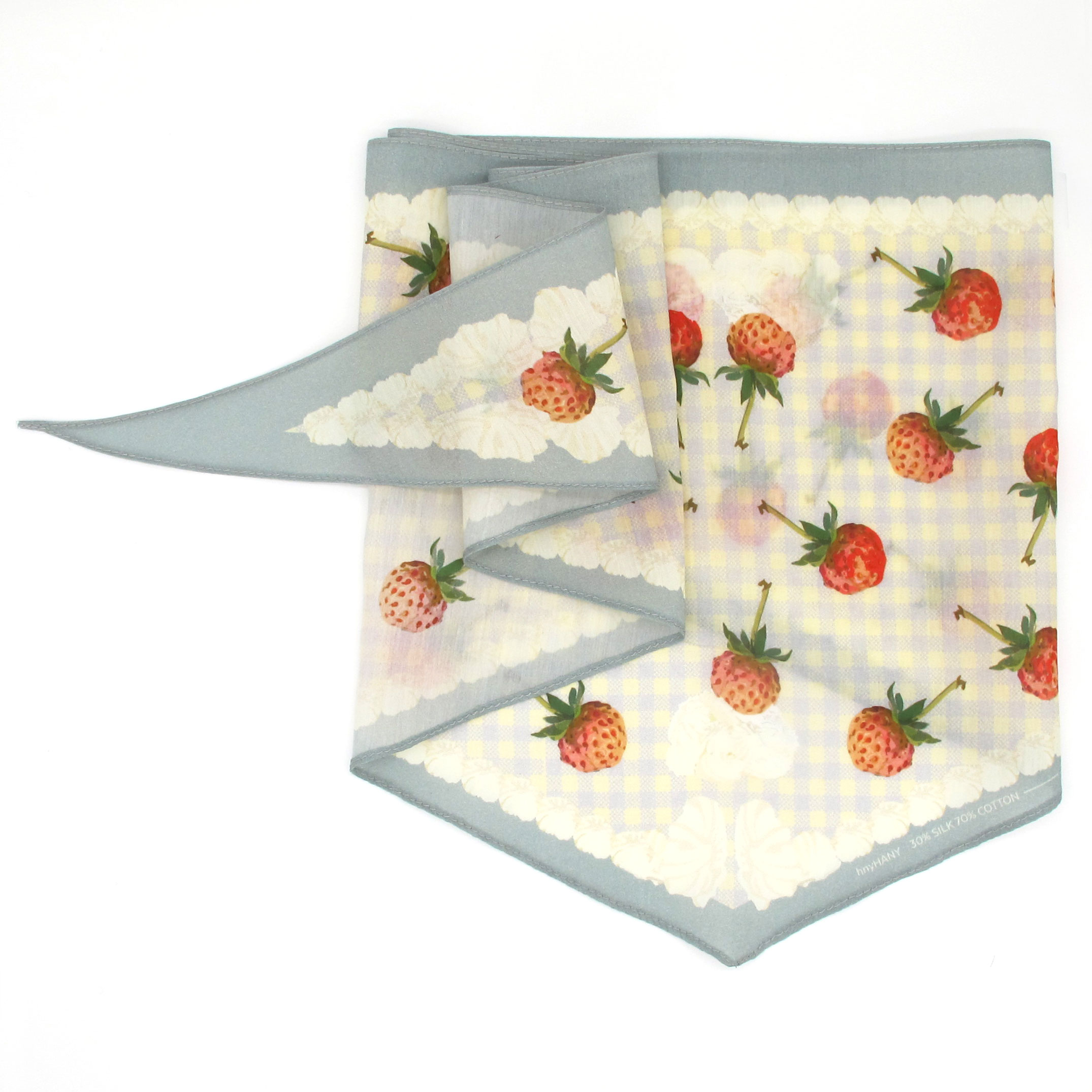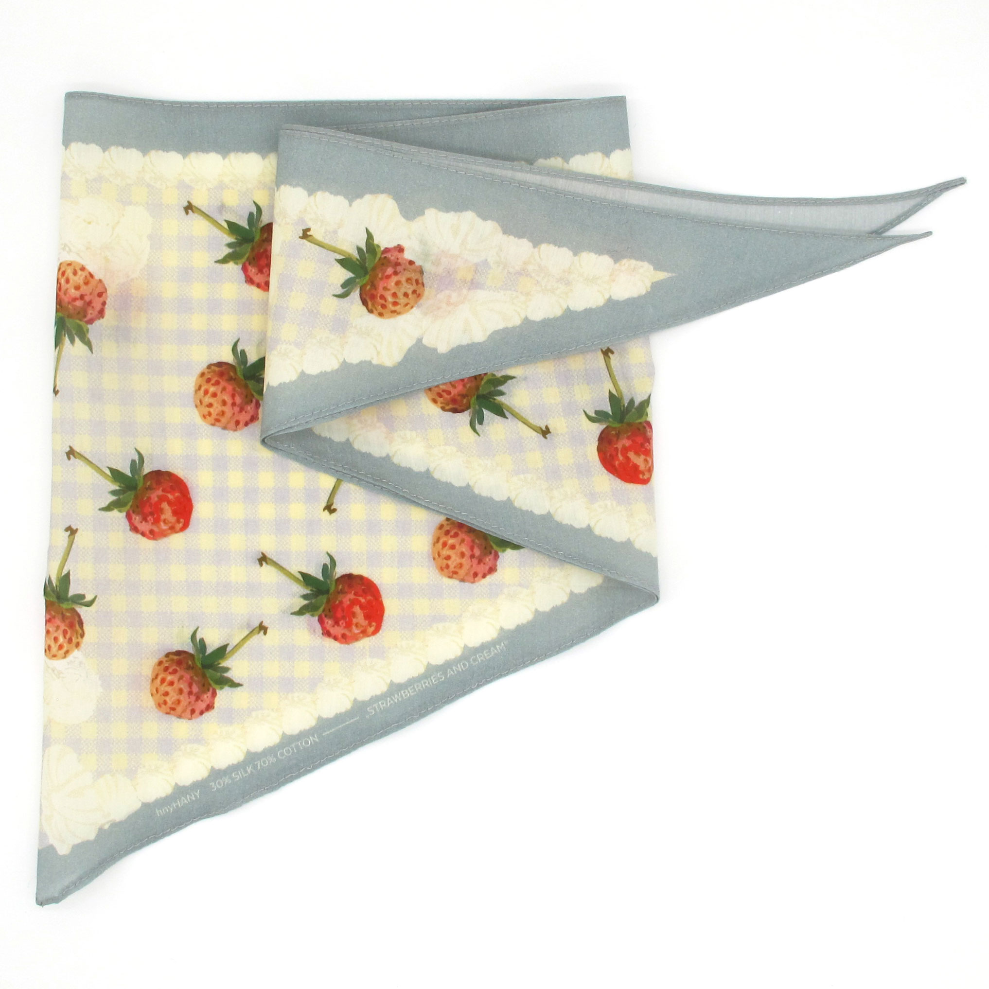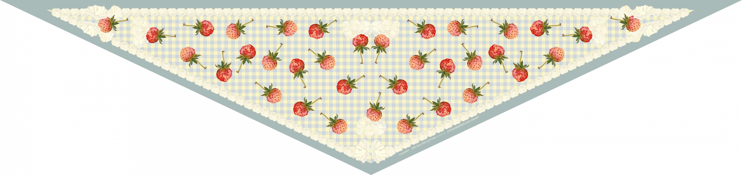 “Triangle” scarf is made of a super soft and light silk and cotton blend featuring the Strawberries & Cream print.