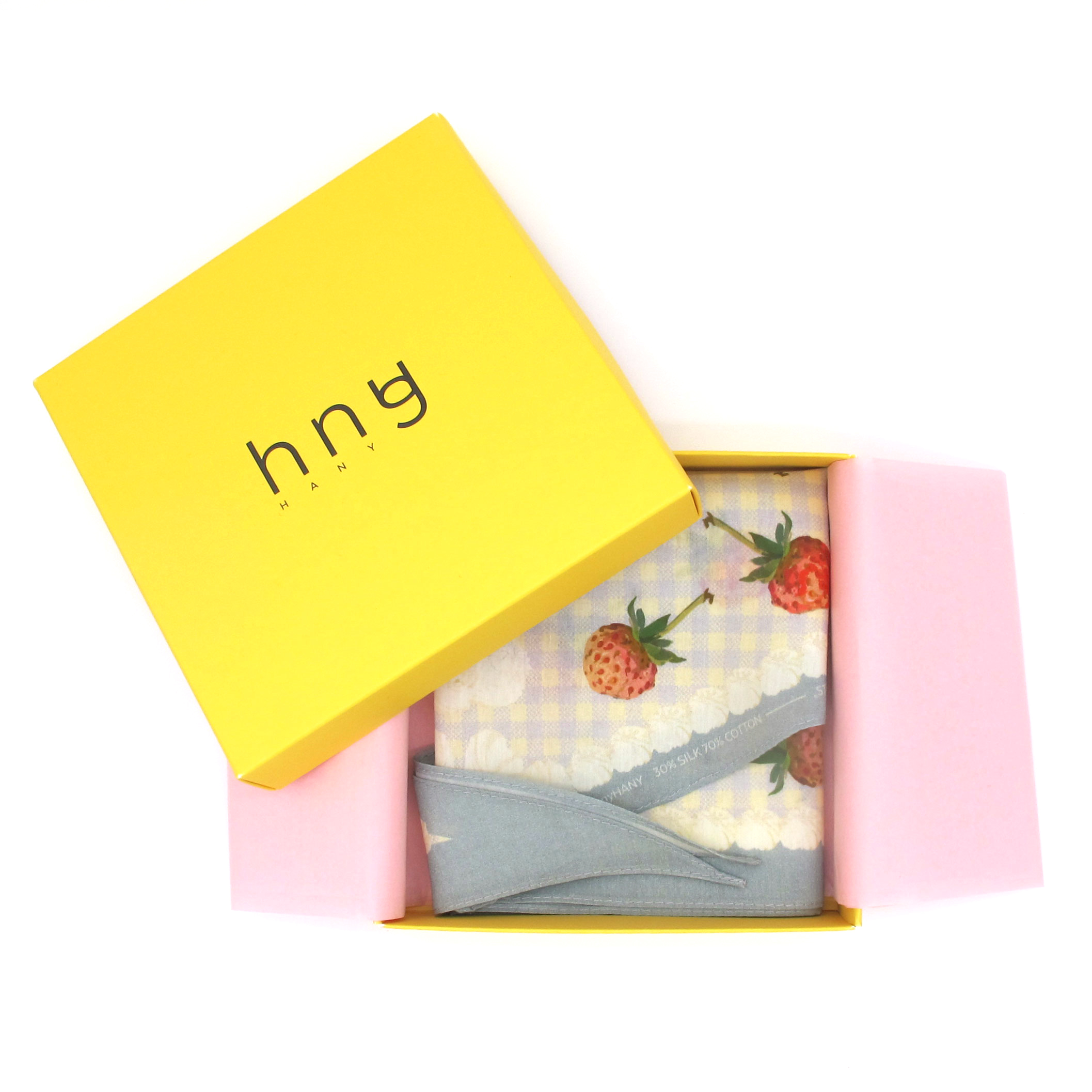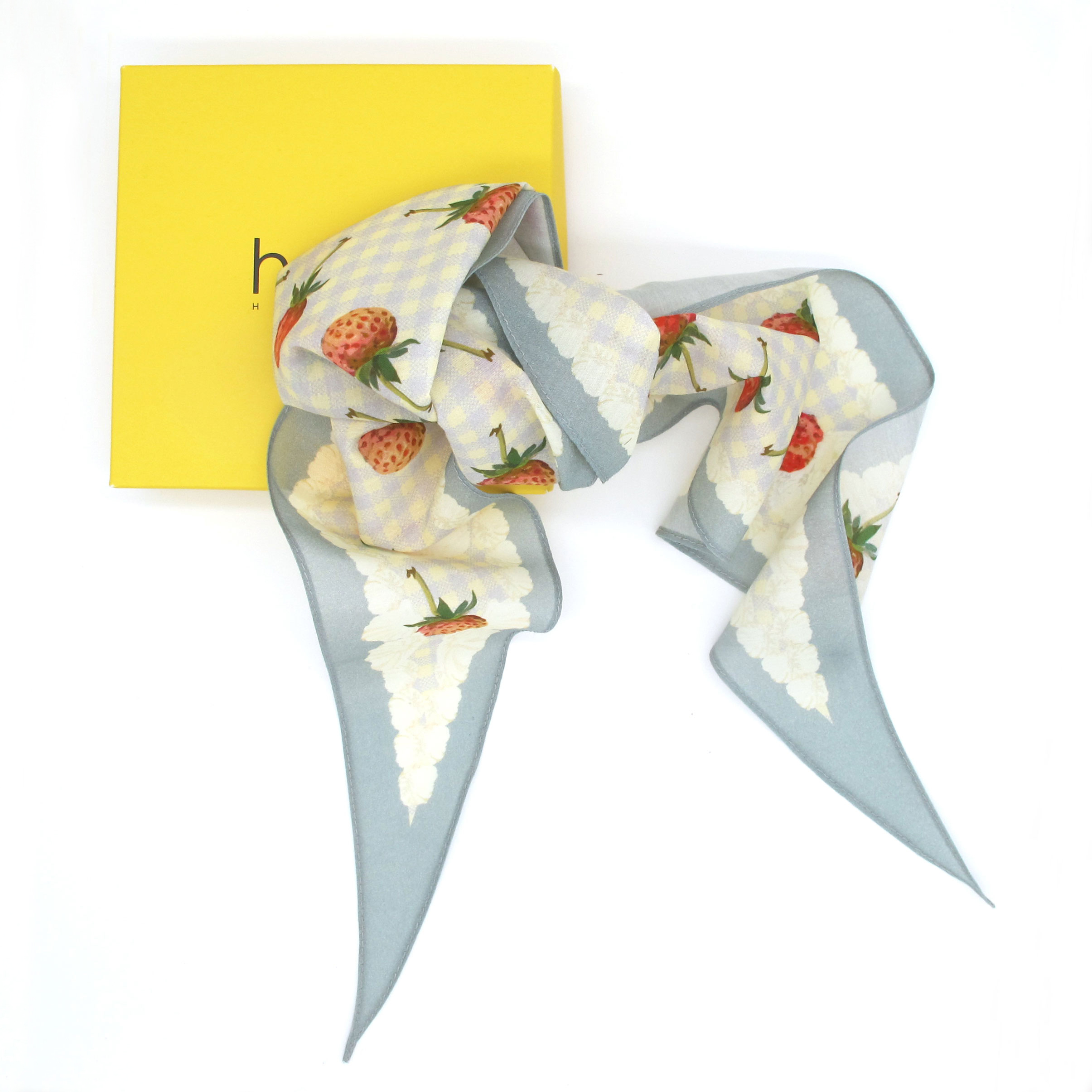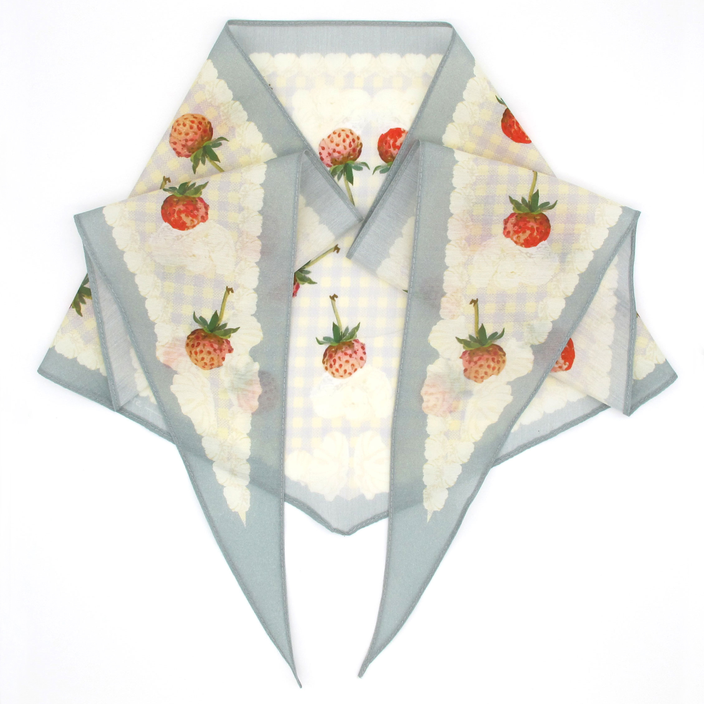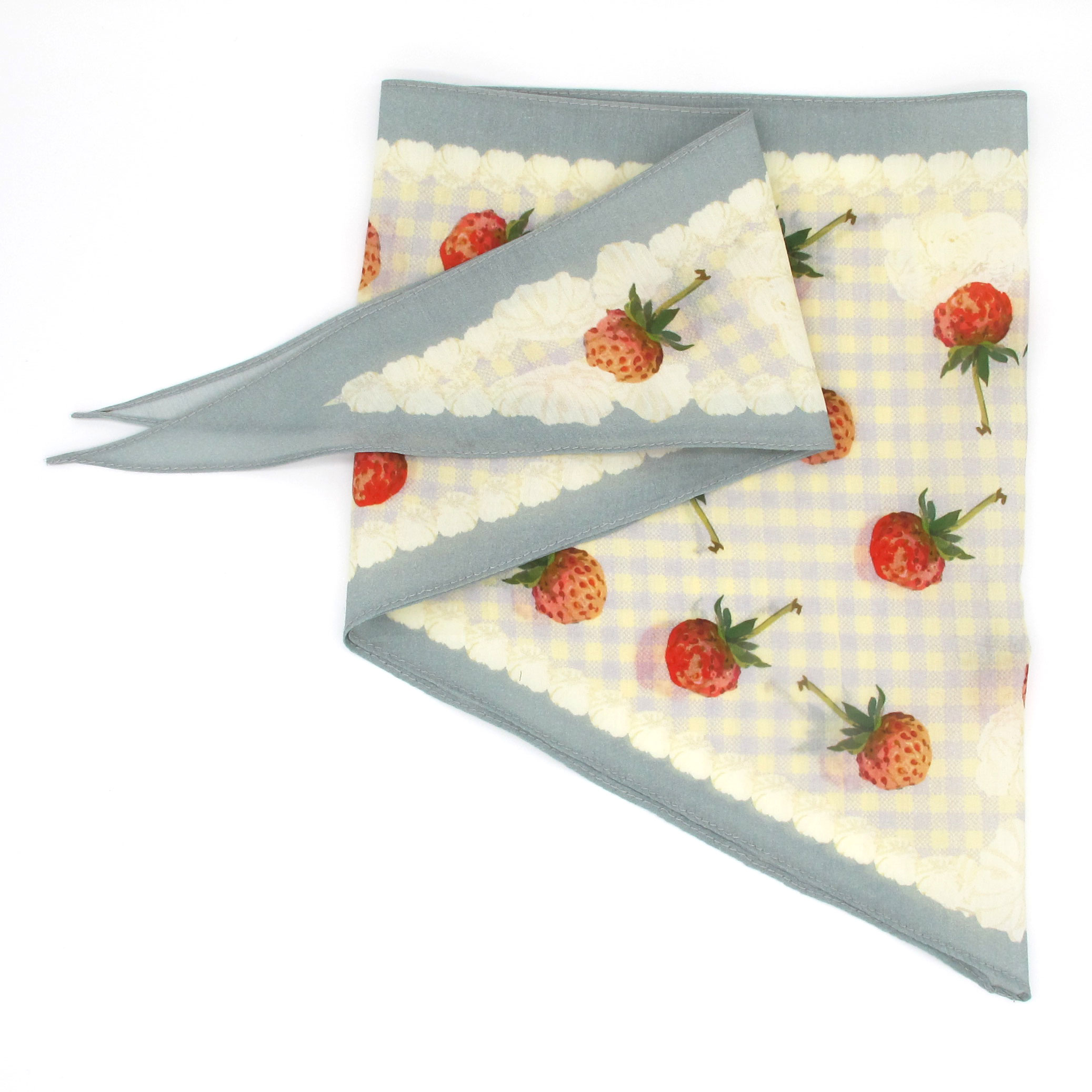“Triangle” scarf is made of a super soft and light silk and cotton blend featuring the Strawberries & Cream print.